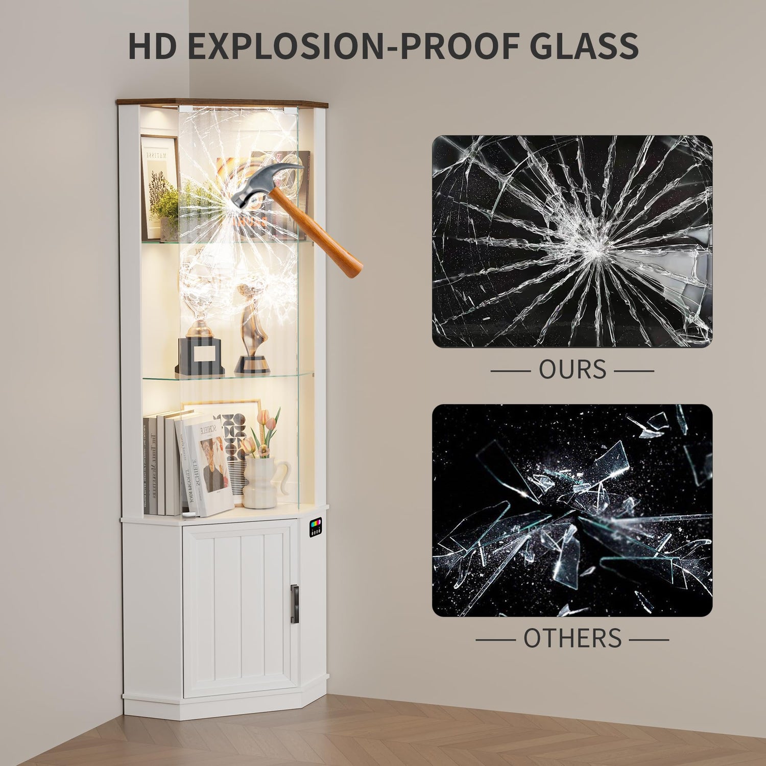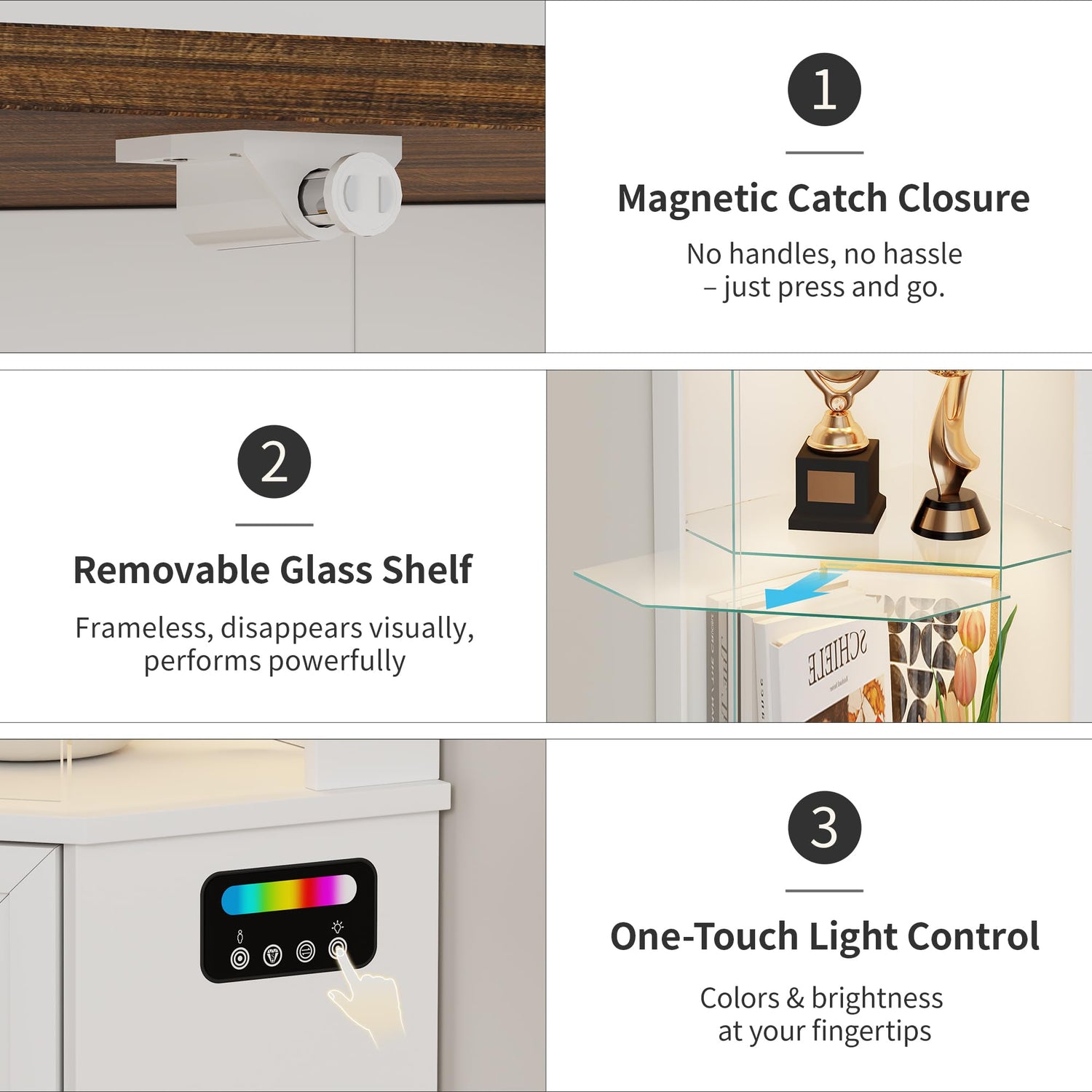 - 【Pop-Up Tempered Glass Doors】The pop-up glass door on this curio cabinet gives you a perfectly clear view of your collections, and the handle-free design looks clean and modern. The clear glass (no warping, no yellowing) makes your collectibles look its absolute best