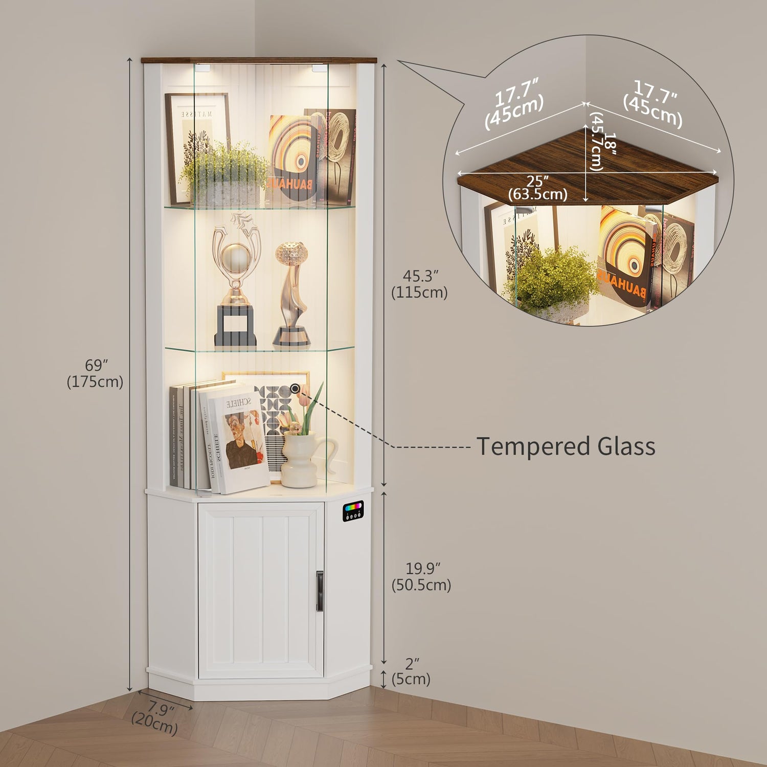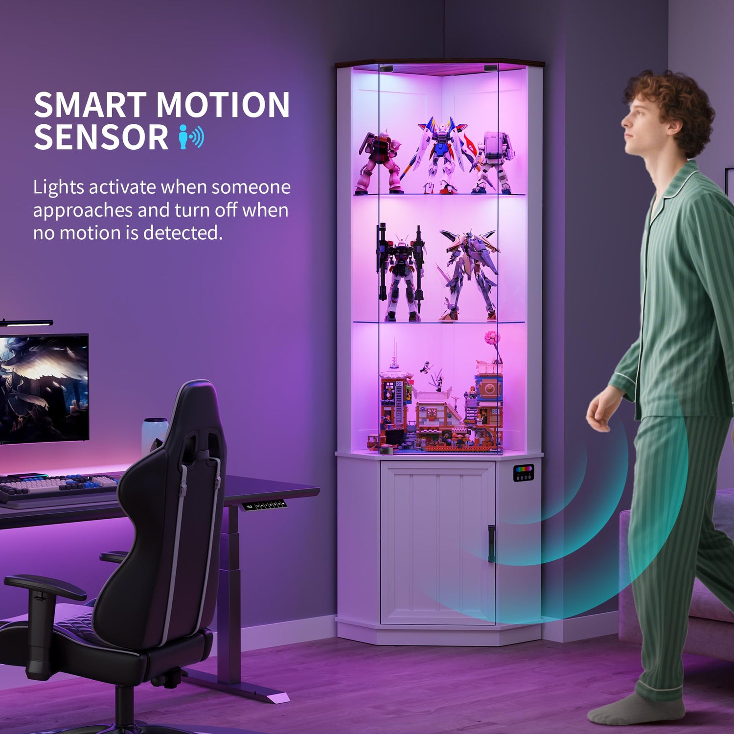 HNEBC 69" Tall Curio Display Cabinet with Glass Door and Movable Shelves,Corner Bookcase with LED Human Sensor Lights,5-Tier RGB Display Case for Collectibles,Bedroom Living Room