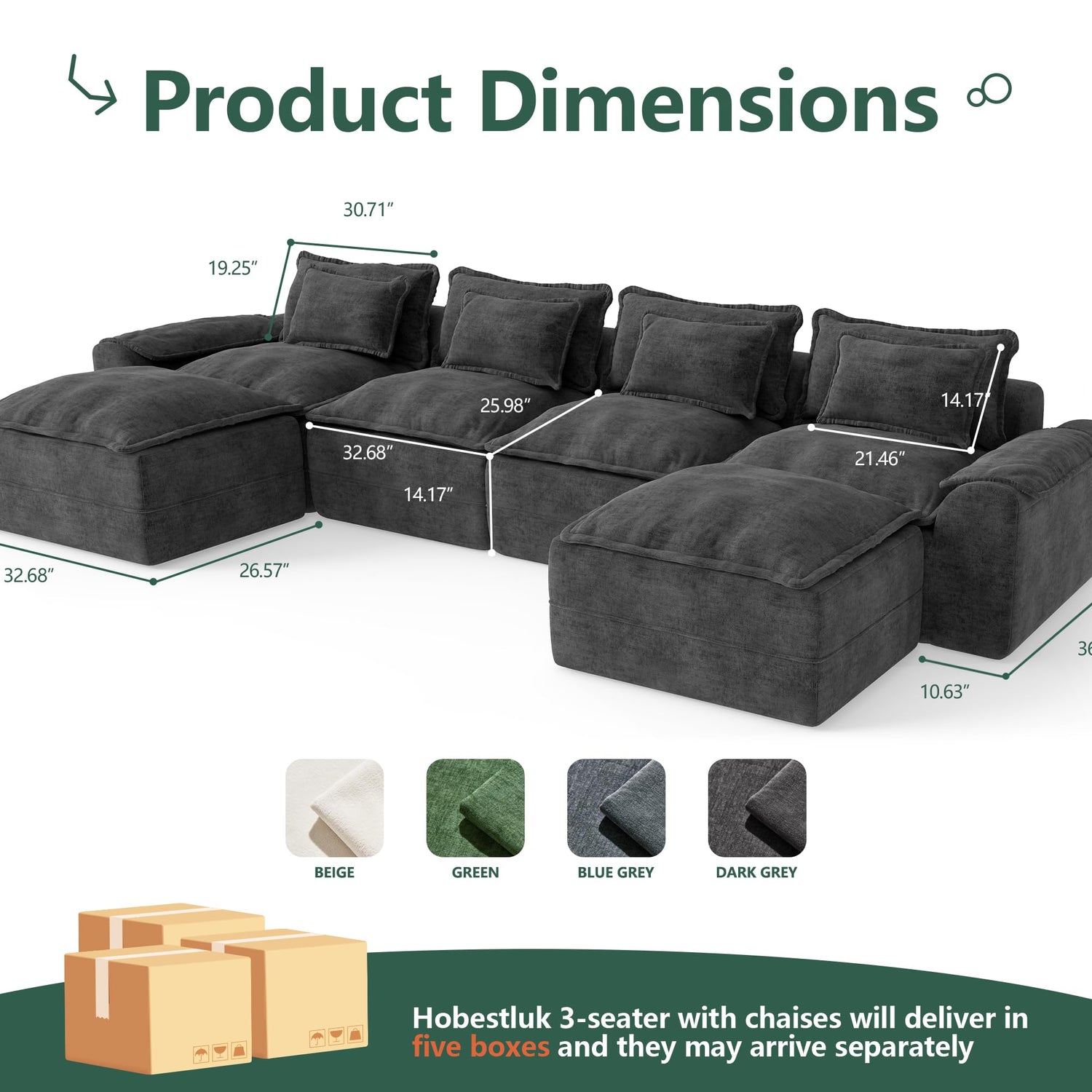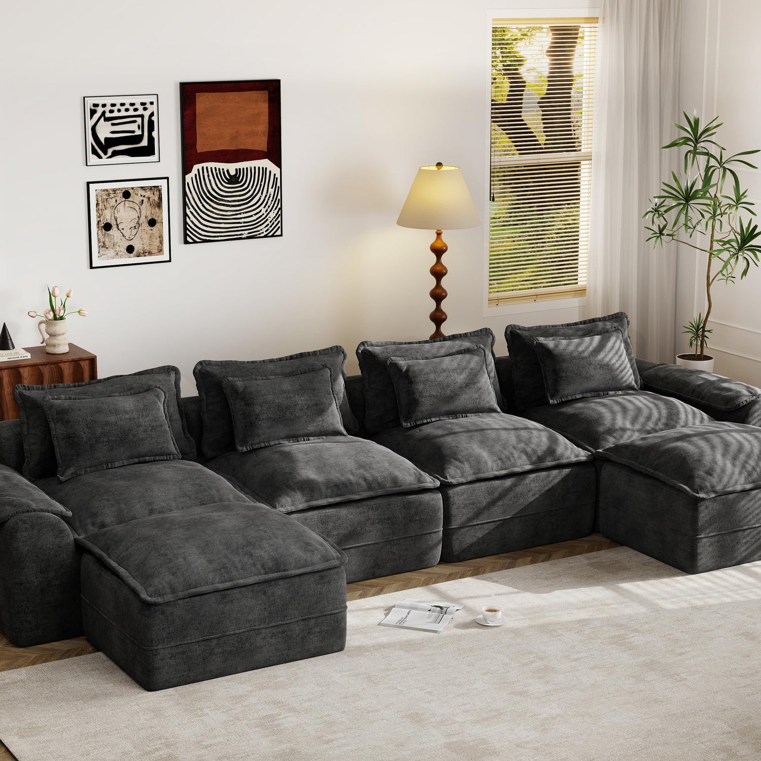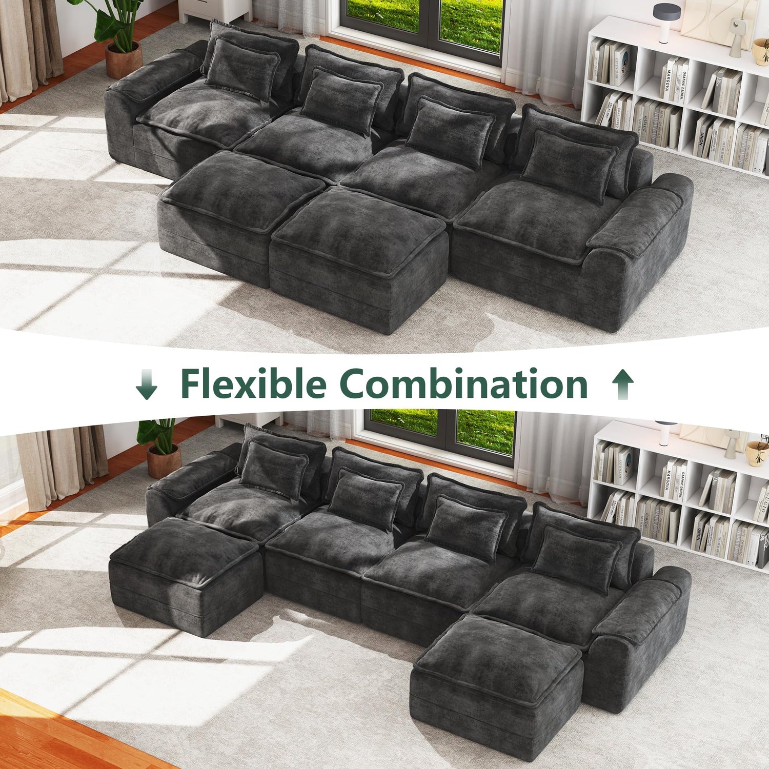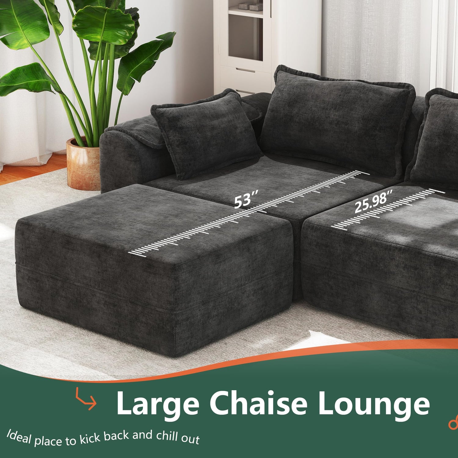 - Instantant Enjoyment: Enjoy the convenience of a no-assembly-required setup. Our 4-seater couch with two ottomans will shipped in three boxes and they may deliver separately. Unpack, unwind, and let it rest for 72 hours to fully embrace its plush form. With its oversized design, our cloud sofa couch offers ample seating space for you and your loved ones.