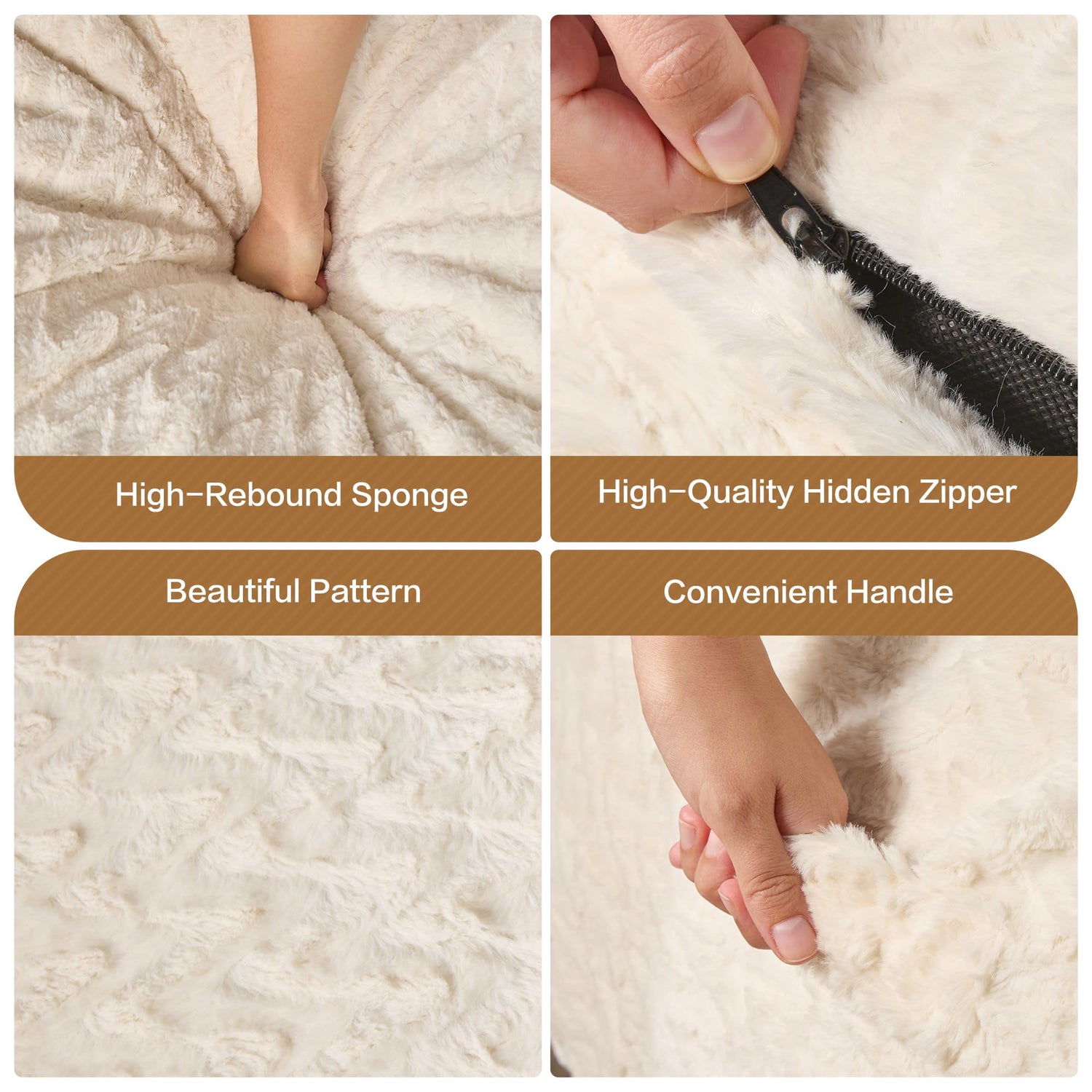 Hobestluk 3ft Bean Bag Chairs for Adults Large Beanbag Chair with Chevron Plush Fur Cover Big Bean Bag Chair for Living Room Bedroom Dorm Office - White (36” x 36” x 22”)