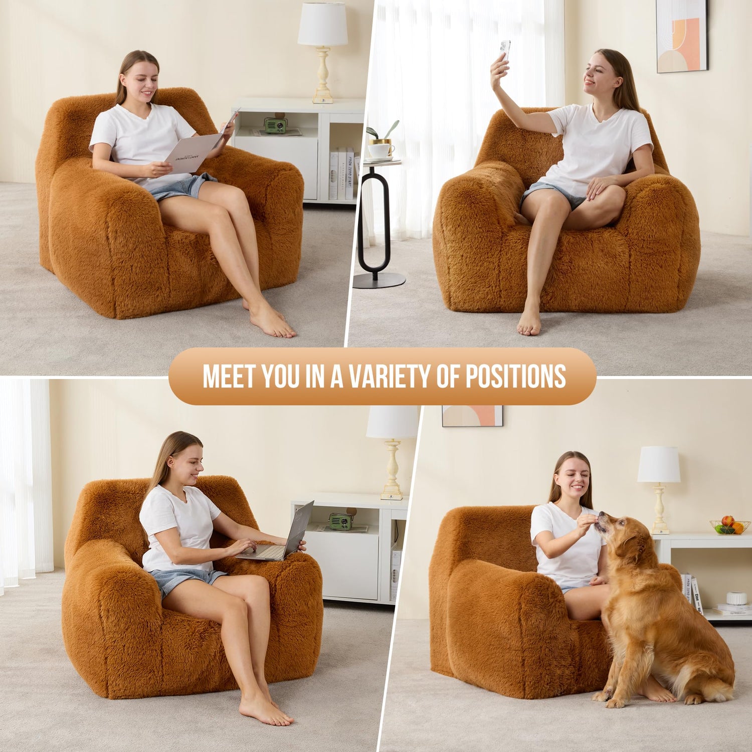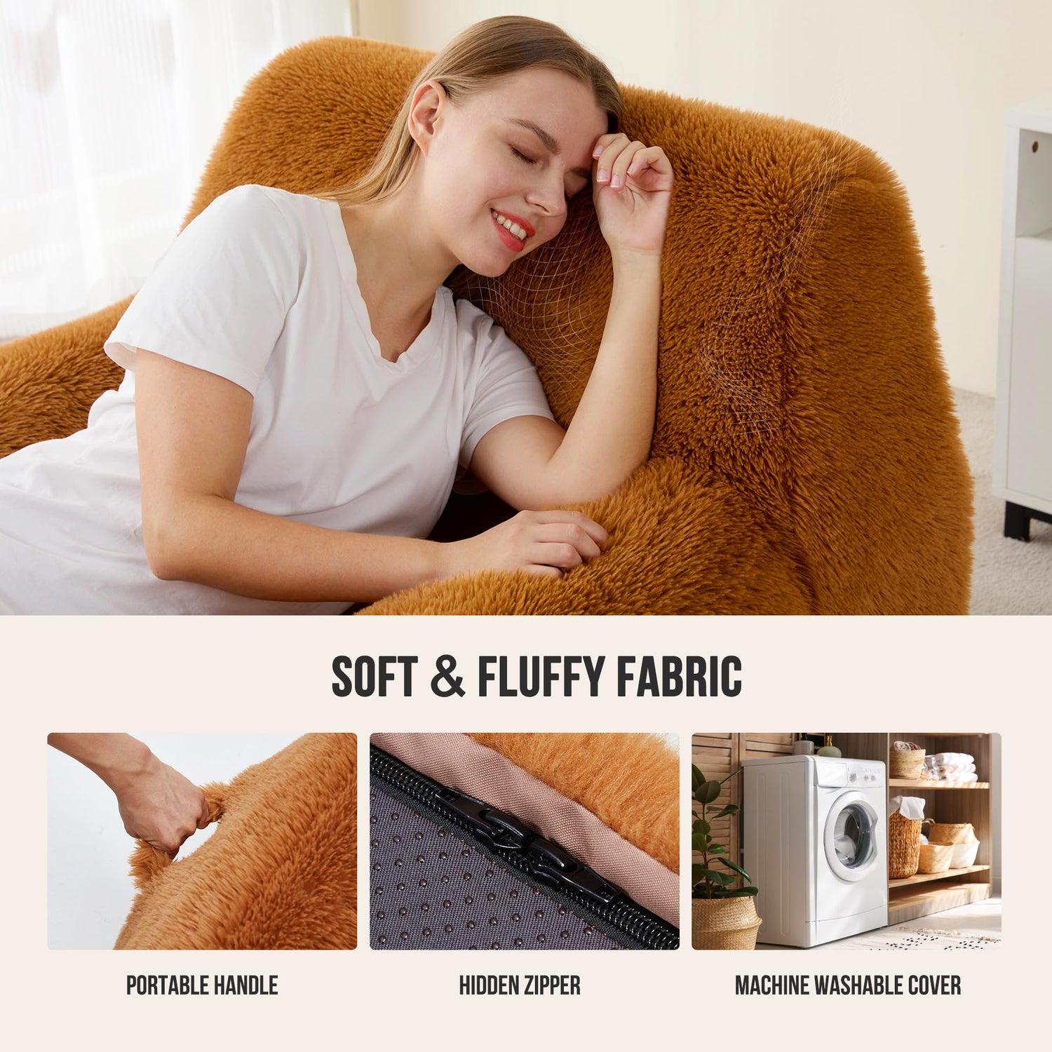 - Fluffy and Skin-friendly Fabric: Our giant bean bag chair is made of skin-friendly and soft fabric, it's cozy and plush and feels like a big hug when you sit on it. There is a hidden zipper on the bottom of the bean bag sofa chair, you can remove the bean bag cover and throw it in the washing machine to keep it clean.