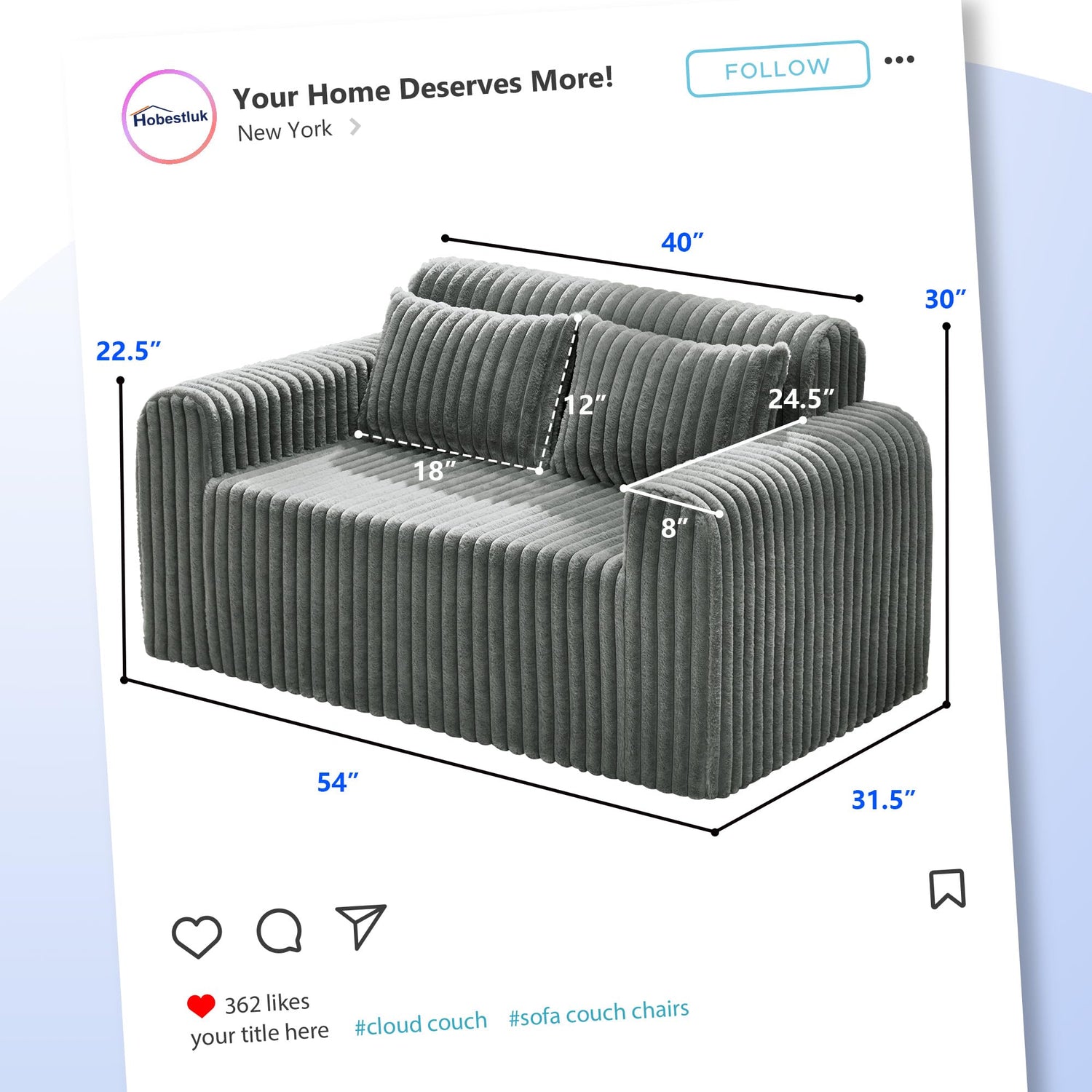 - Good Furniture Choice: The overall size of the comfy couch sofa is 54”x31.5”x30”. Its compact size can better fit any room style, living room, bedroom, gaming room, dorms and even office. You can lie on the cozy sofa chair, taking a nap, sipping a cup of coffee on the love seat couch, enjoying leisure time with families or friends