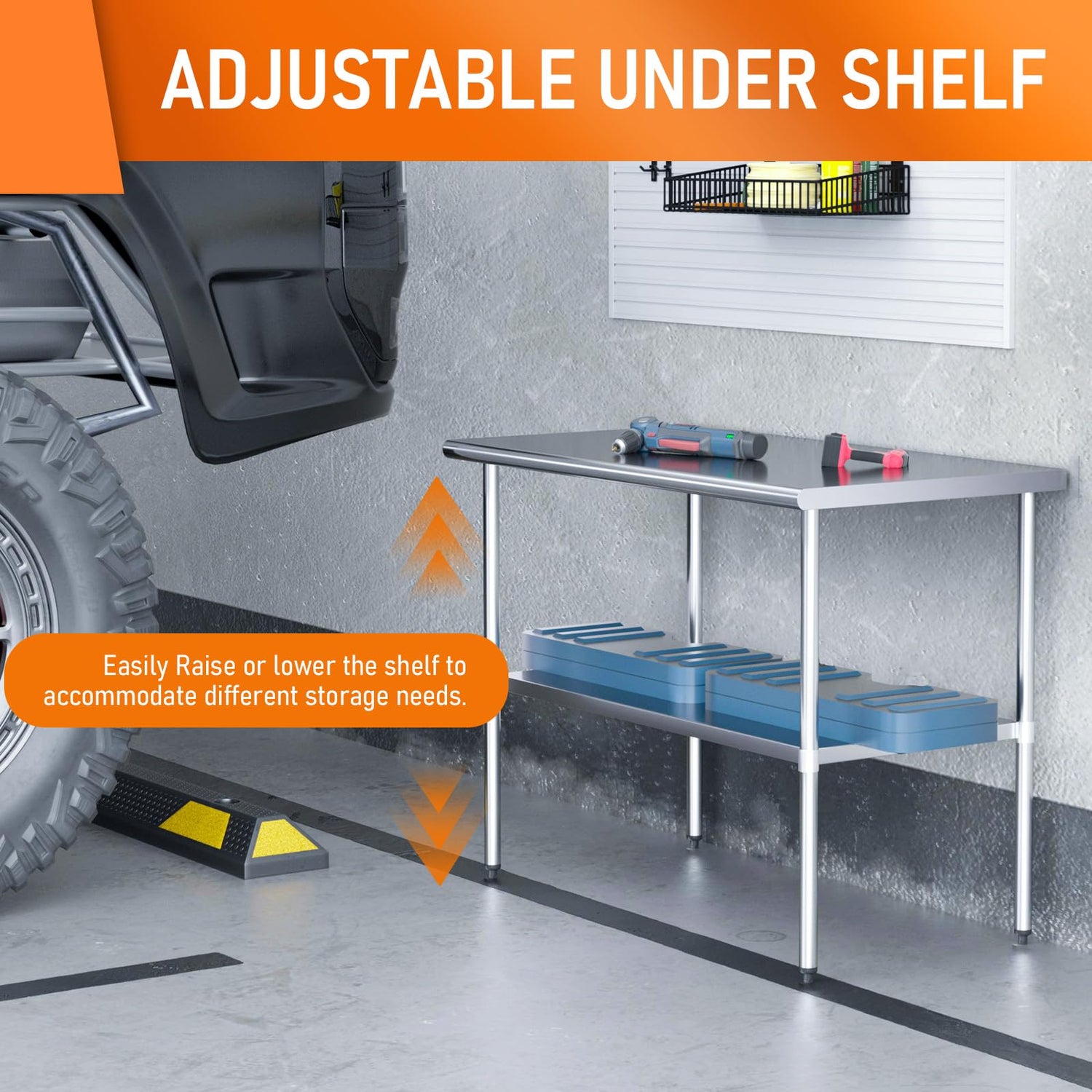 HOCCOT Stainless Steel Table for Prep & Work 24" X 48" inches with Adjustable Shelf, Commercial Workstations, Utility Table in Kitchen Garage Laundry Room Outdoor BBQ