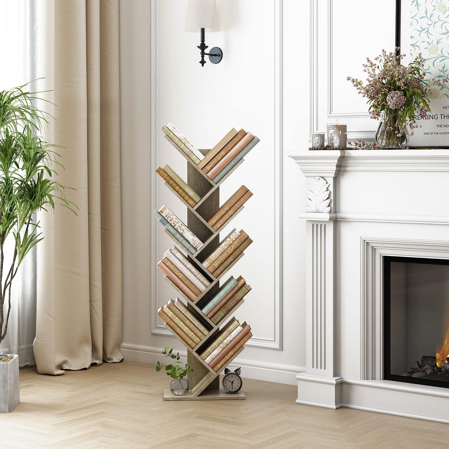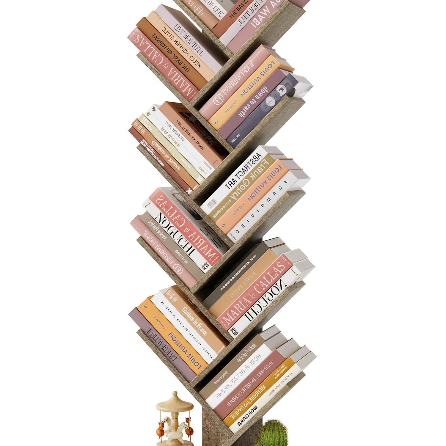 Hoctieon 10 Tier Tree Bookshelf, 10 Shelf Bookcase, Free Standing Tree Bookcase, Display Floor Standing Shelf for Books, Book Organizer Shelves for Home Office, Living Room, Bedroom, Greige