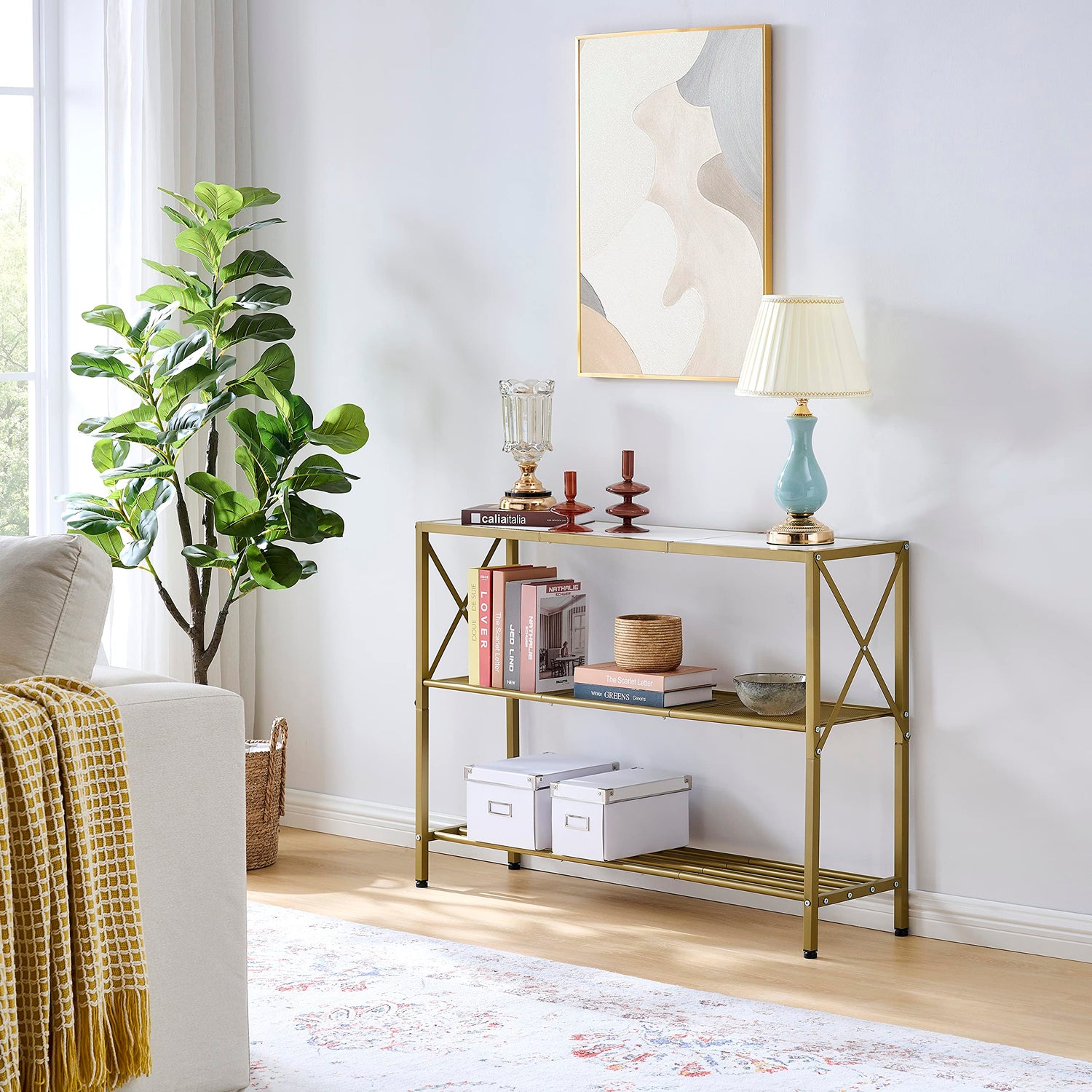 Hoctieon Gold Console Table, 3 Tier Entryway Table, Hallway Table, Narrow Sofa Table with Shelves, Entrance Table for Entryway, Gold and White