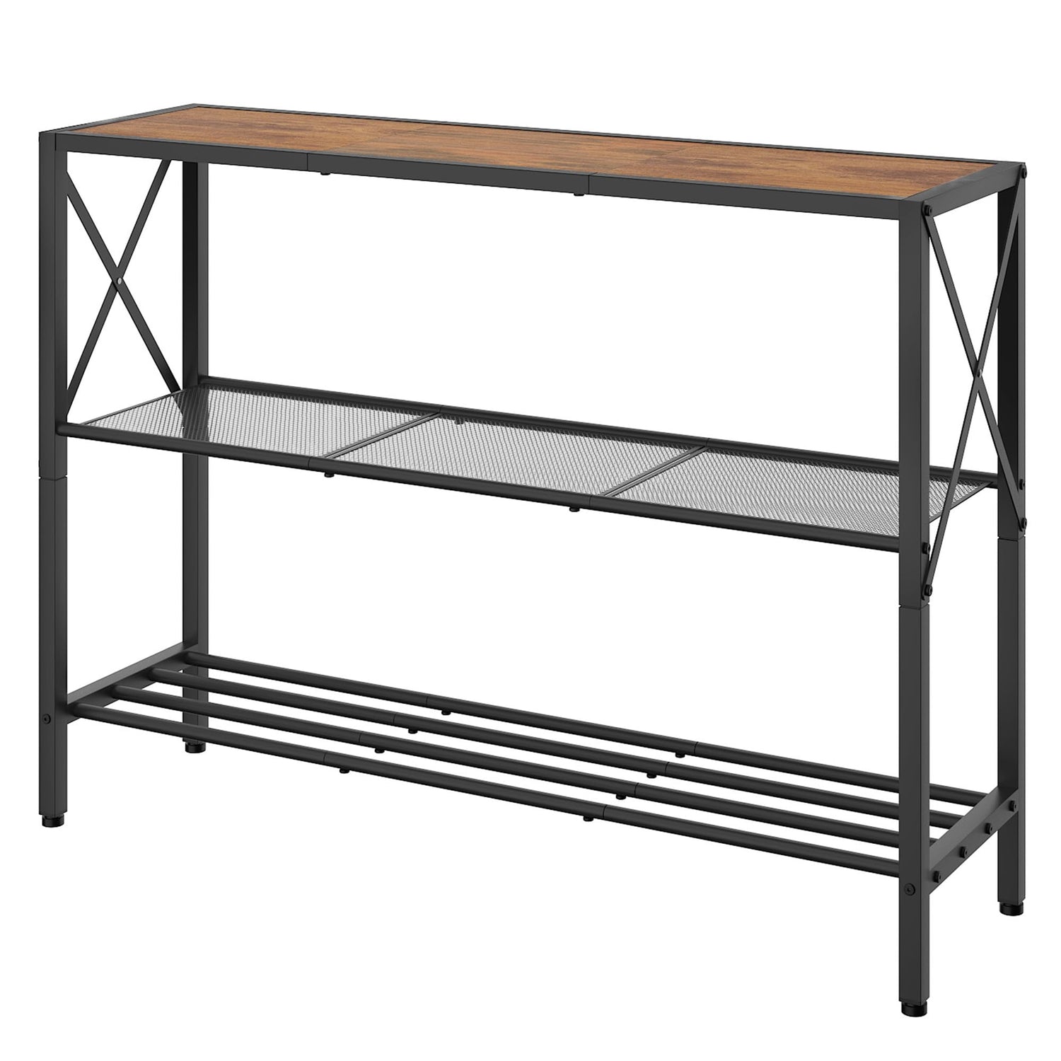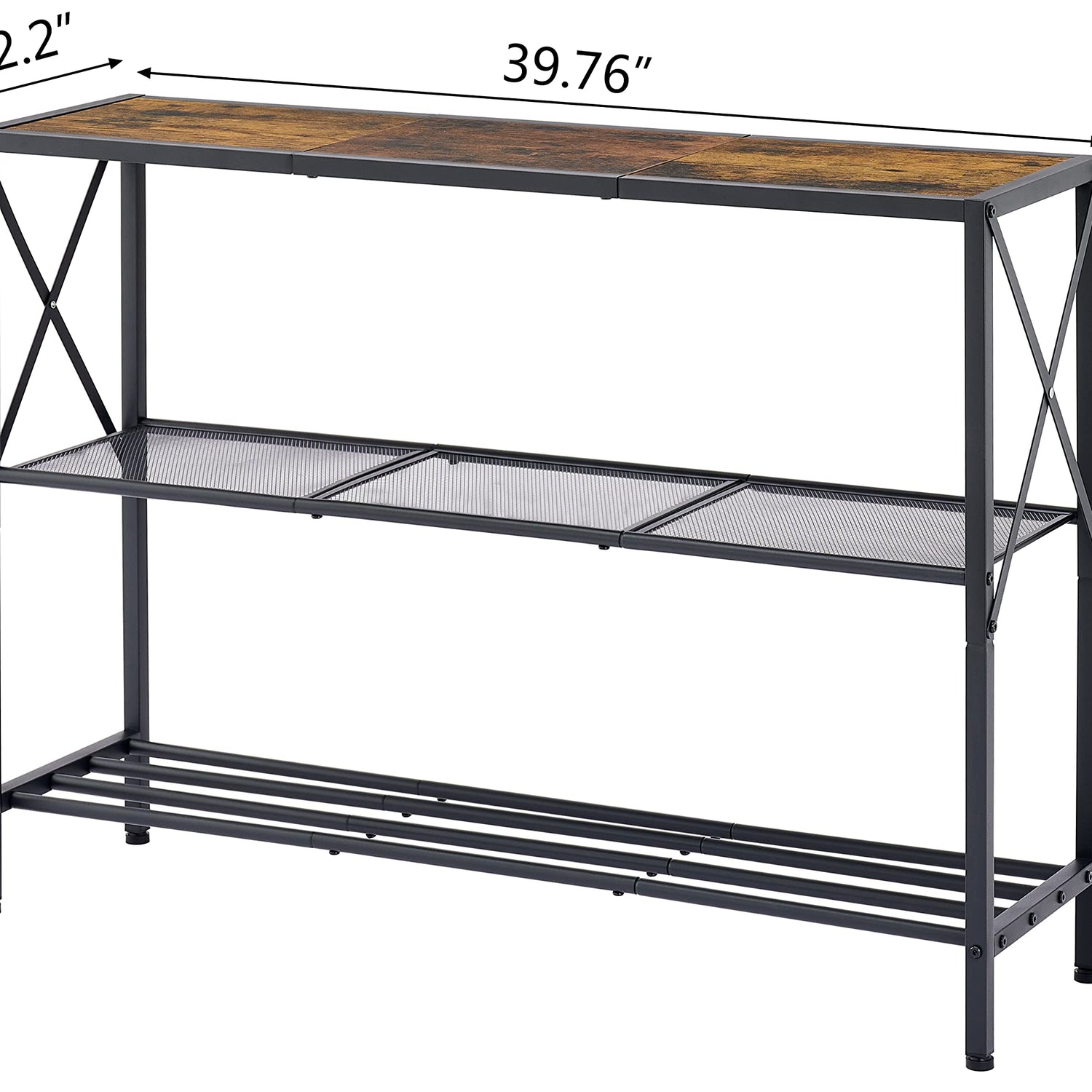 Hoctieon Industrial Console Table, 3 Tier Entryway Table, Hallway Table, Narrow Sofa Table with Shelves, Entrance Table for Entryway, Living Room, Foyer, Hallway, Office, Rustic Brown&Black