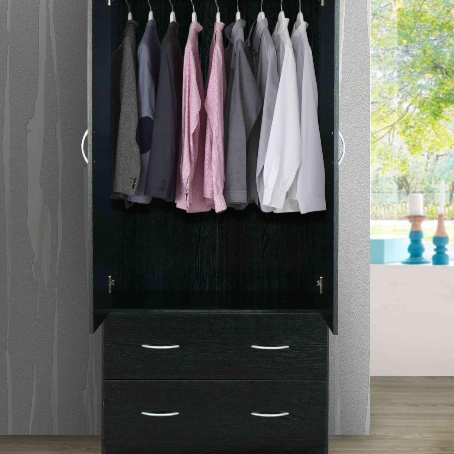 - 2 Doors open fully to view of all your hanging items