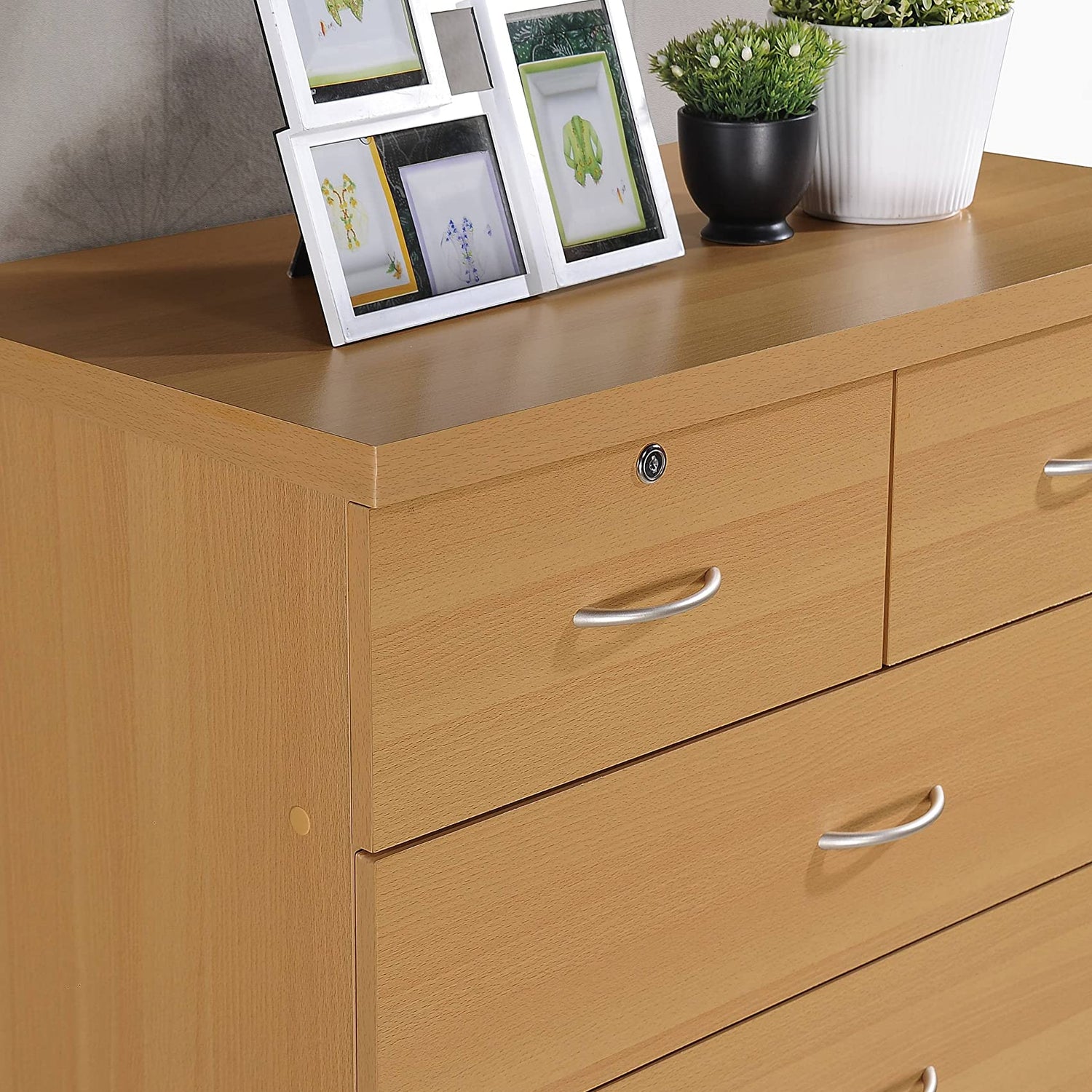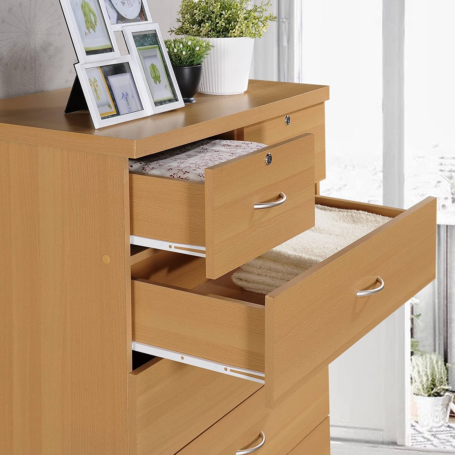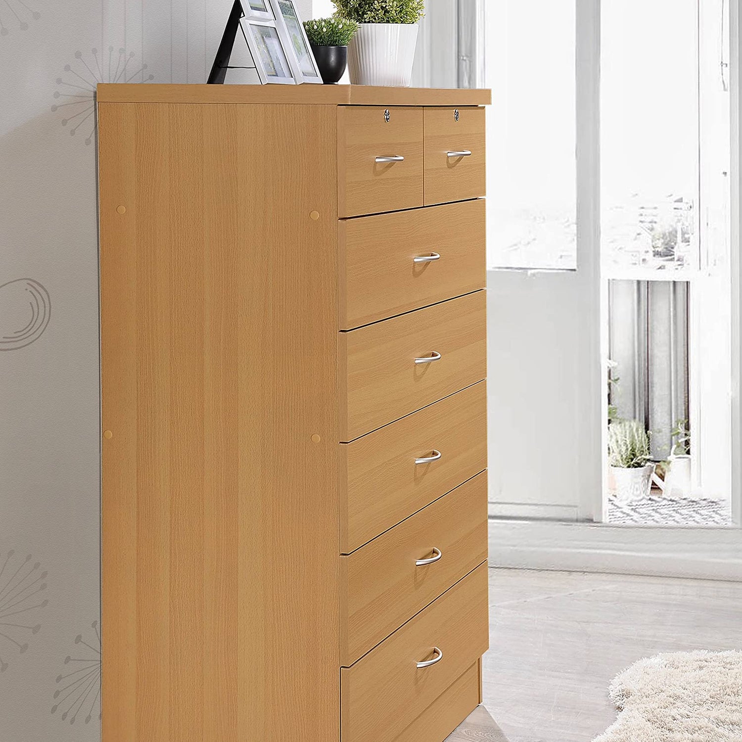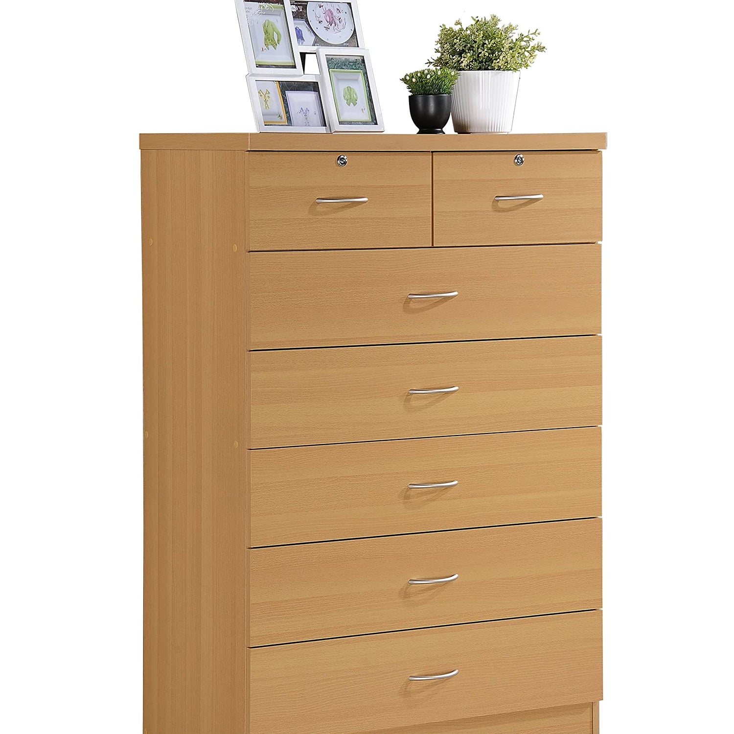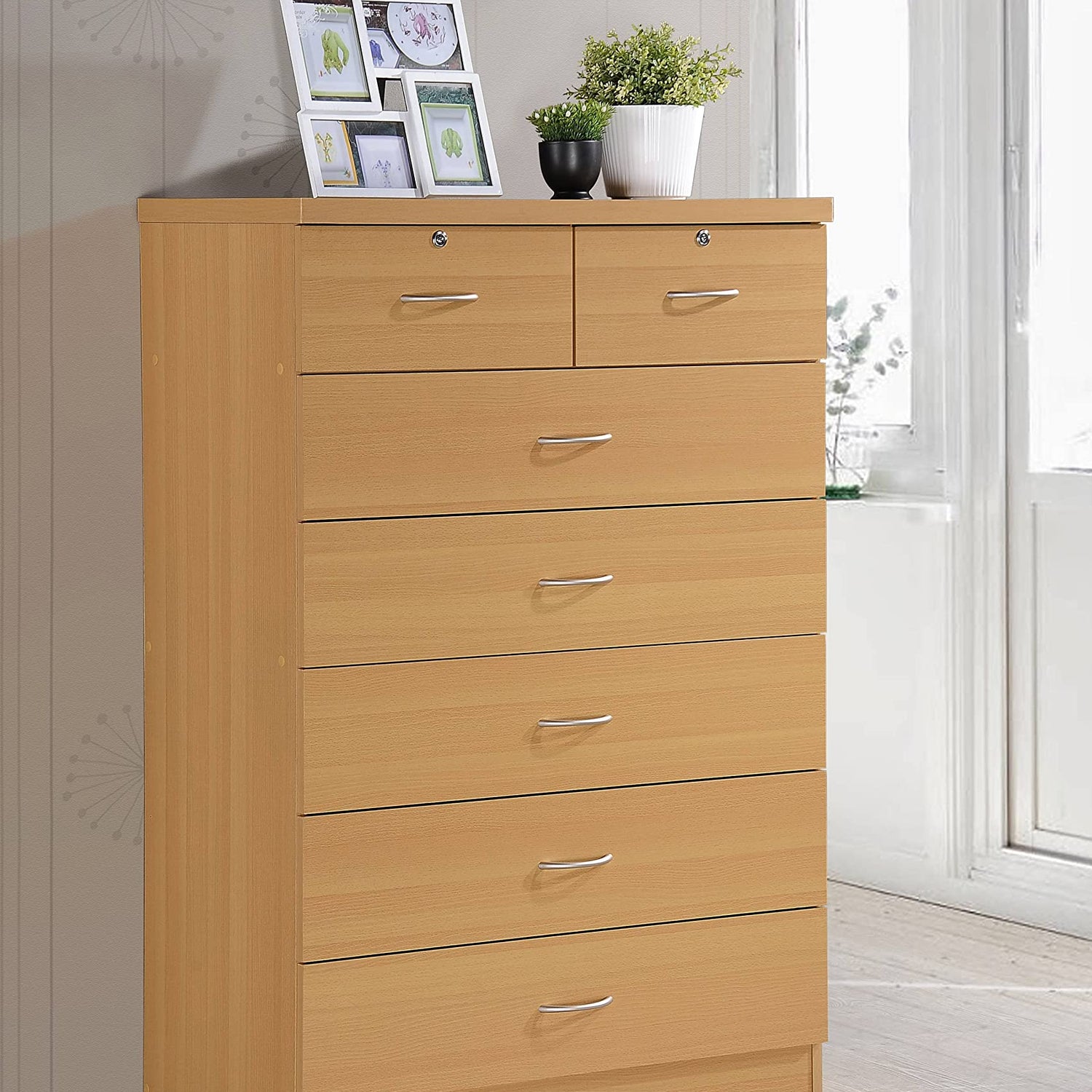 HODEDAH 7 Drawer Wood Dresser for Bedroom, 31.5 inch Wide Chest of Drawers, with 2 Locks on the Top Drawers, Storage Organization Unit for Clothing, Beech