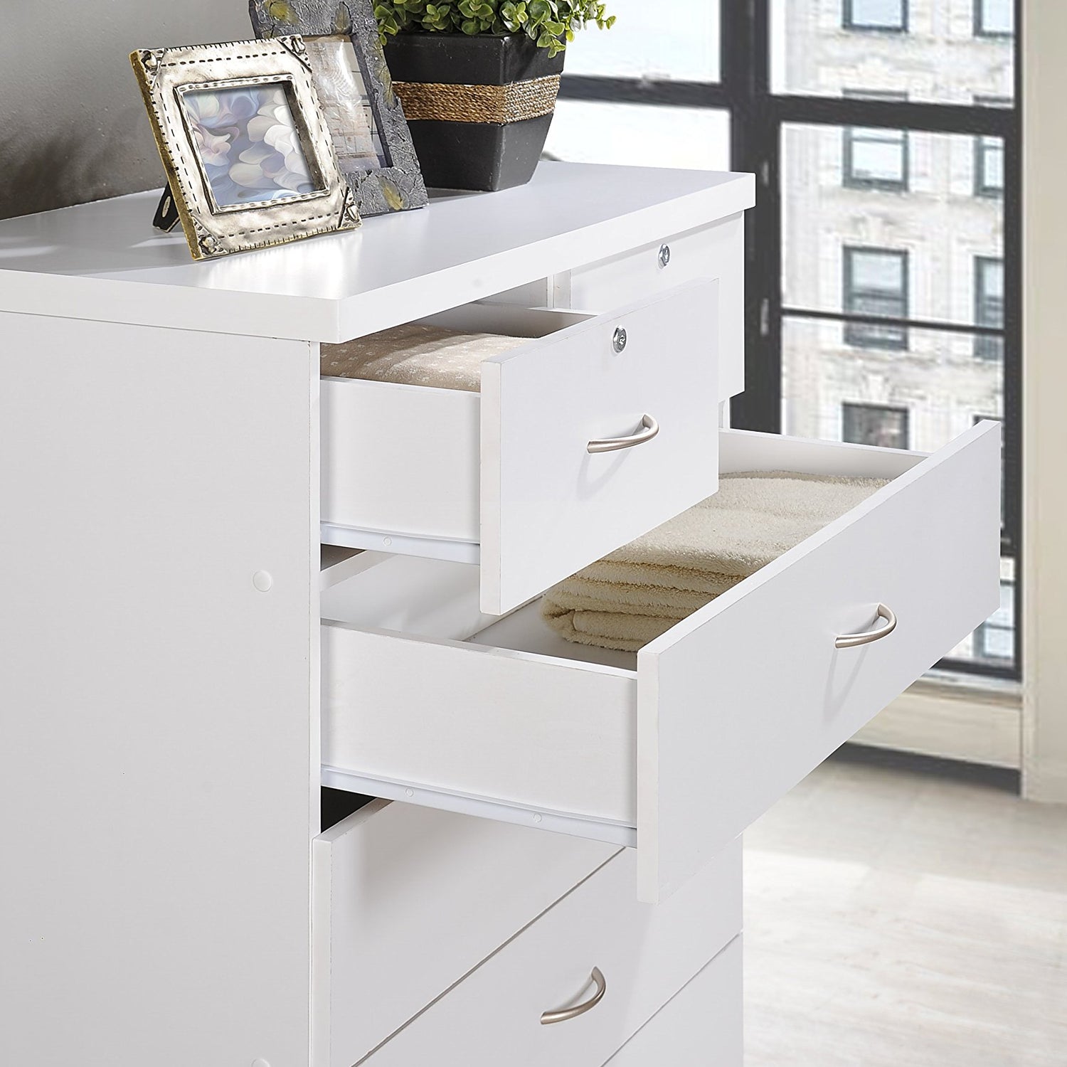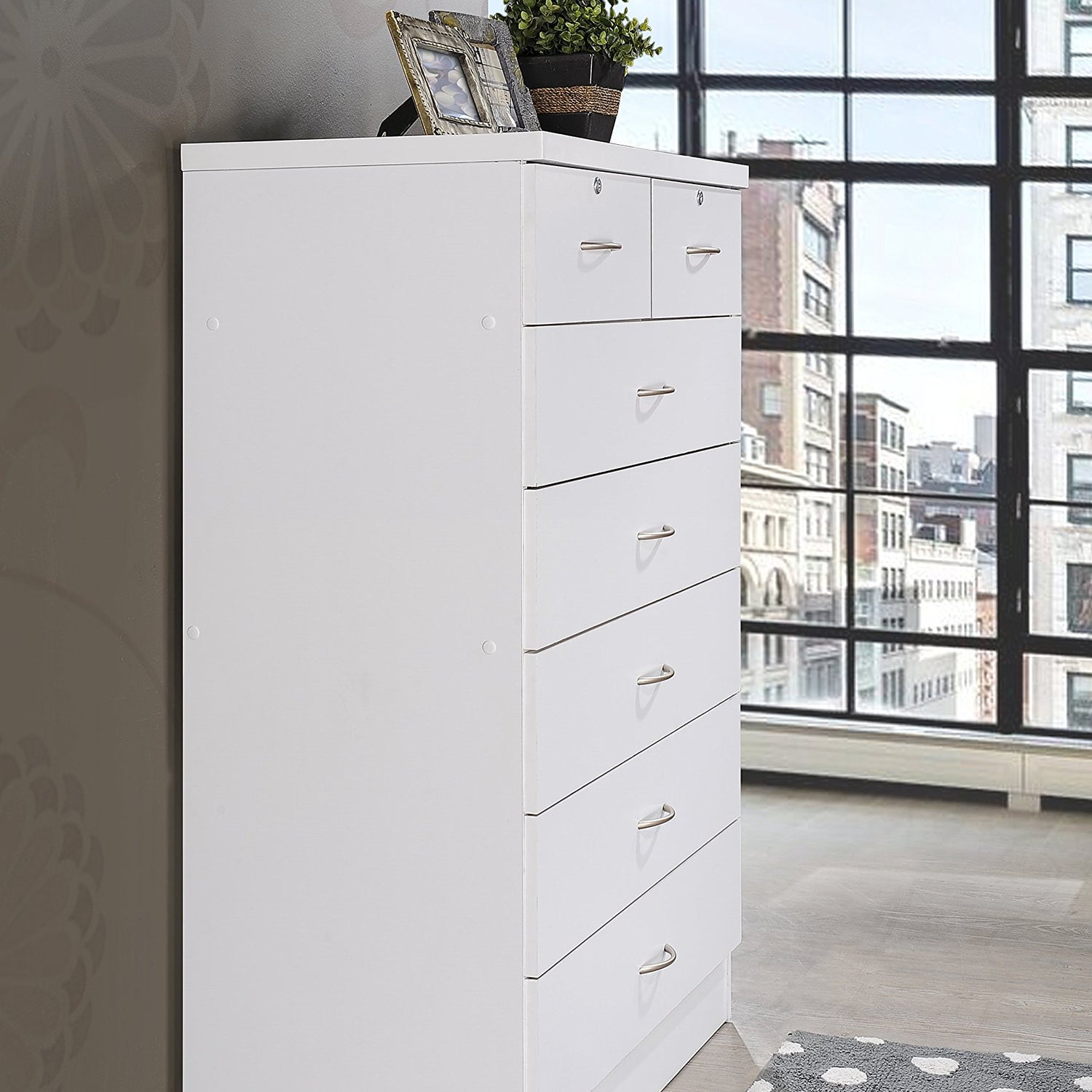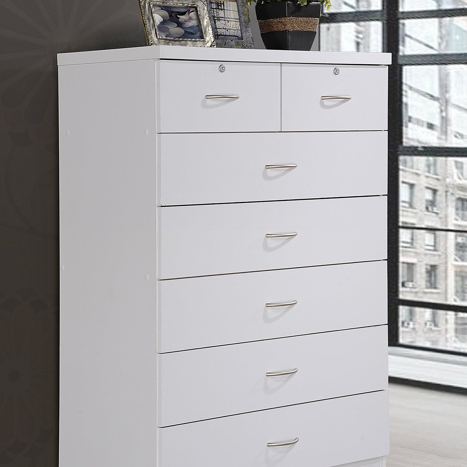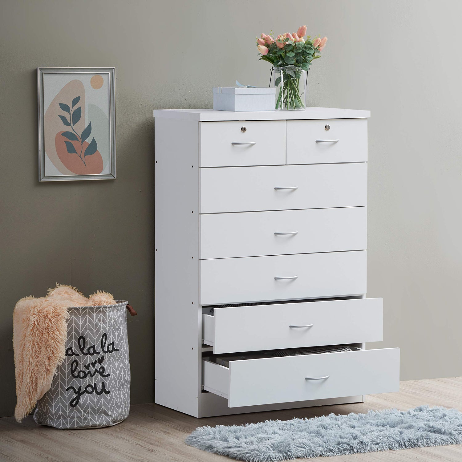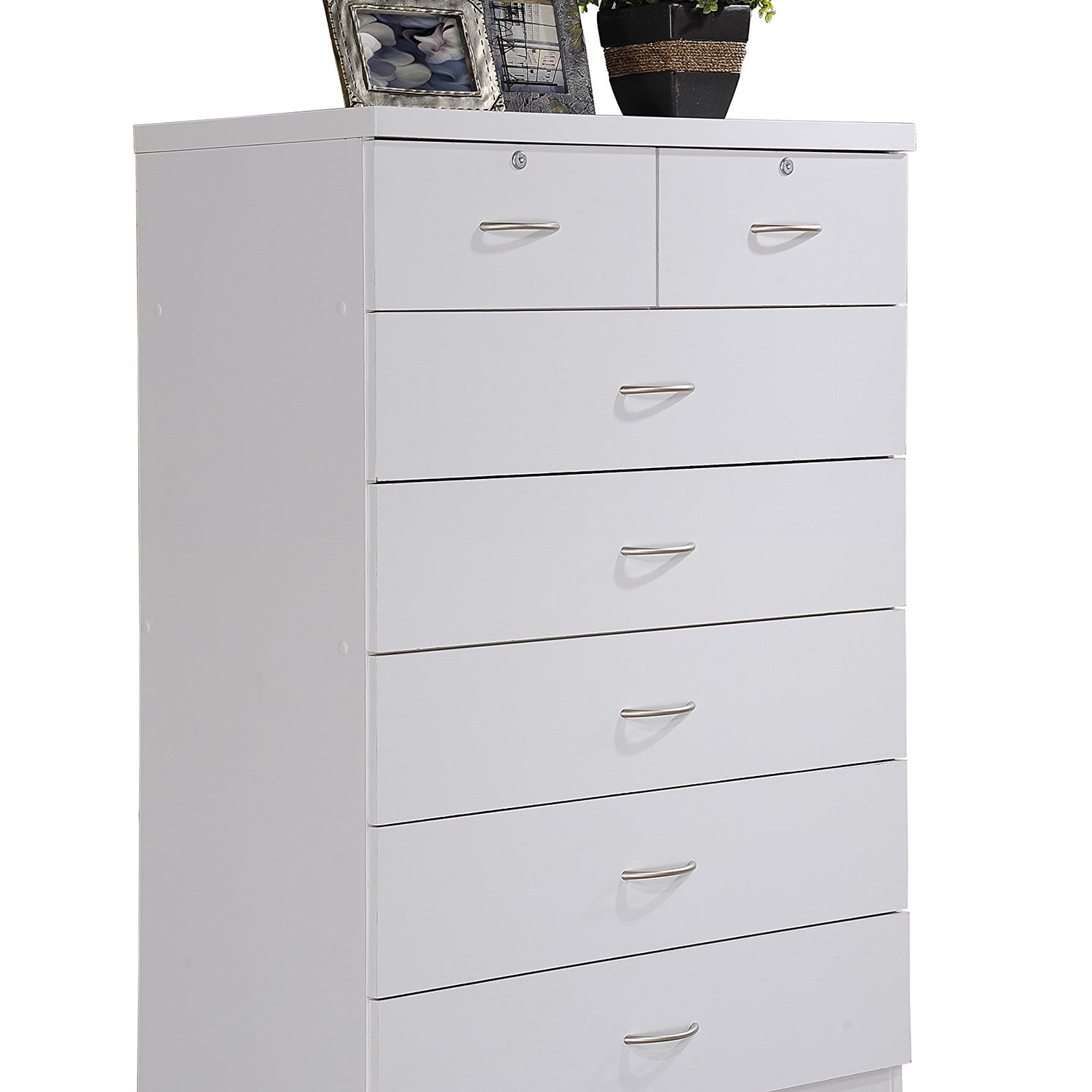 HODEDAH 7 Drawer Wood Dresser for Bedroom, 31.5 inch Wide Chest of Drawers, with 2 Locks on the Top Drawers, Storage Organization Unit for Clothing, White