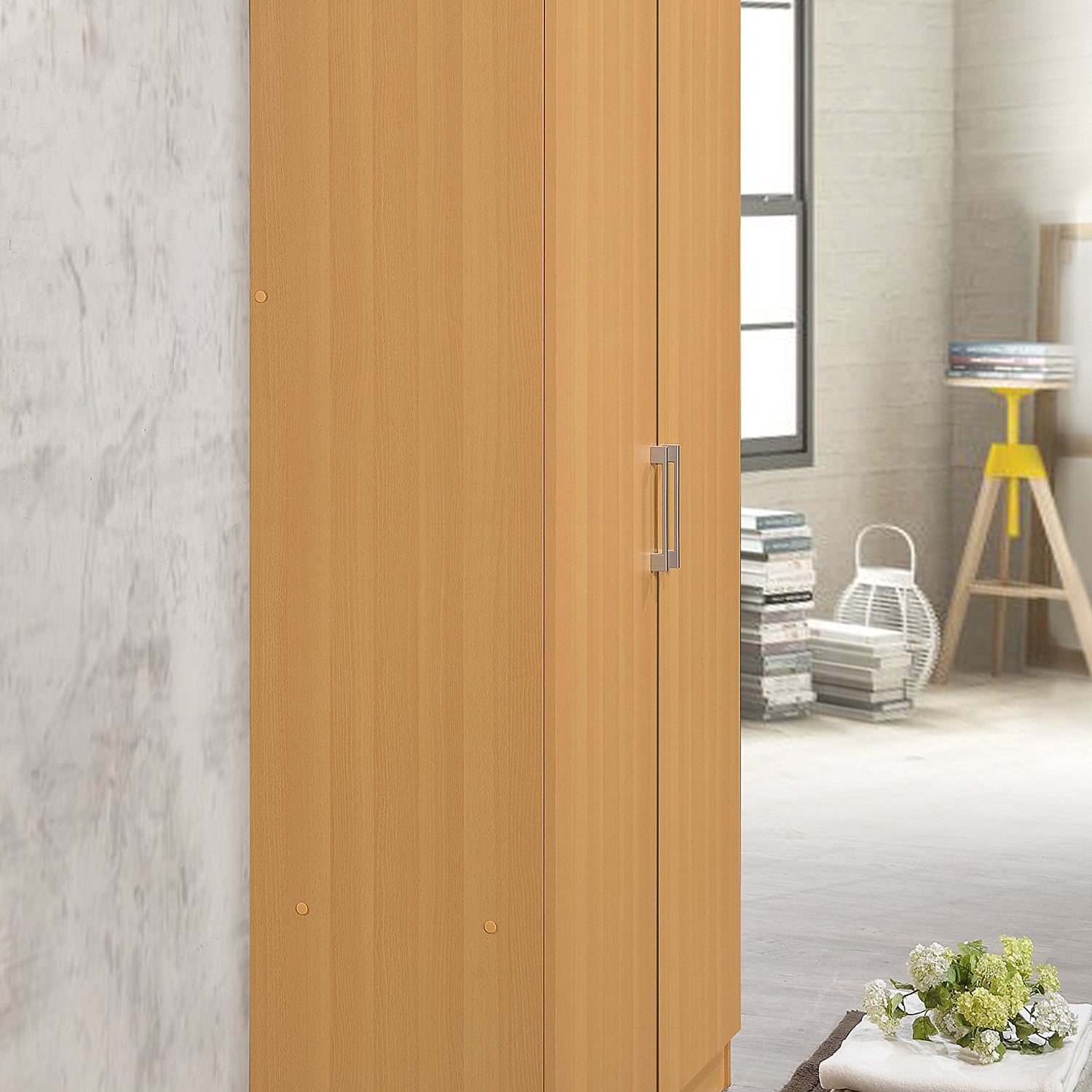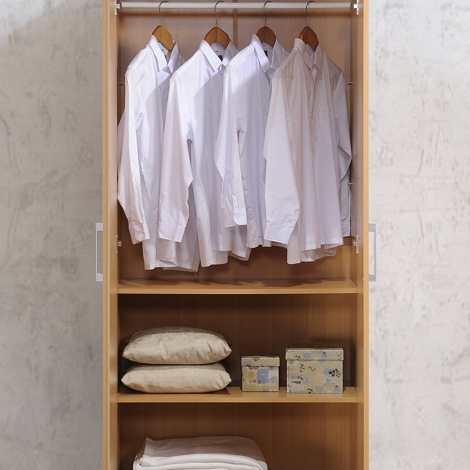 HODEDAH IMPORT 2 Door Wardrobe with Adjustable/Removable Shelves & Hanging Rod, Beech