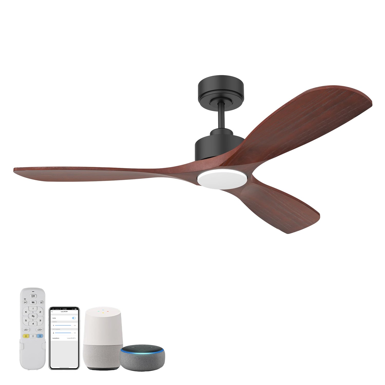 Hoenofly 52” Wood Smart Ceiling Fans with Lights Remote,Quiet DC Motor,Outdoor Indoor Ceiling Fan,Voice Control via WIFI Alexa App,Dimmable,Modern Black Lighting& Ceiling Fan for Bedroom Patio Porch