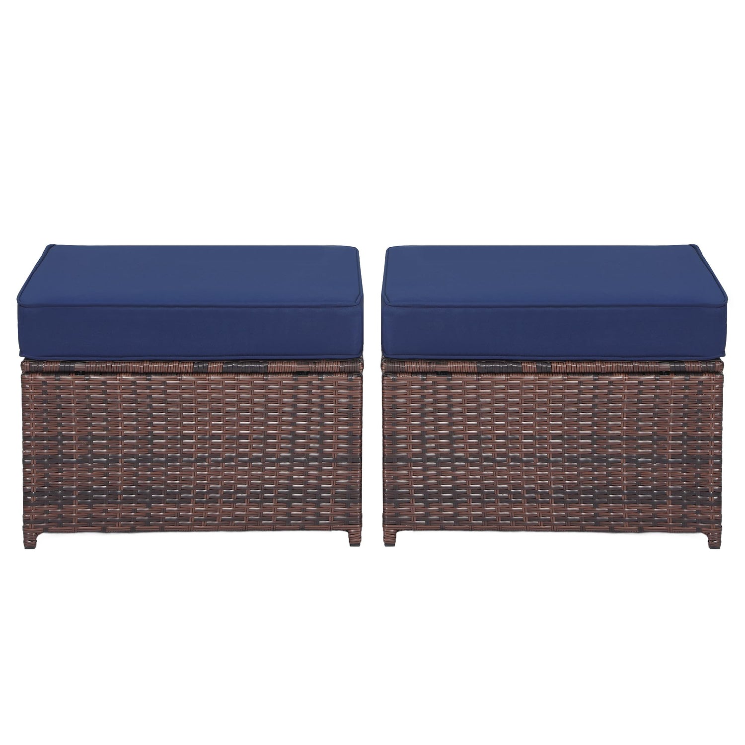 - VERSATILE DESIGN: Outdoor ottoman with removable navy blue cushion, perfect for use as a footstool or extra seating in patio, poolside, and garden settings