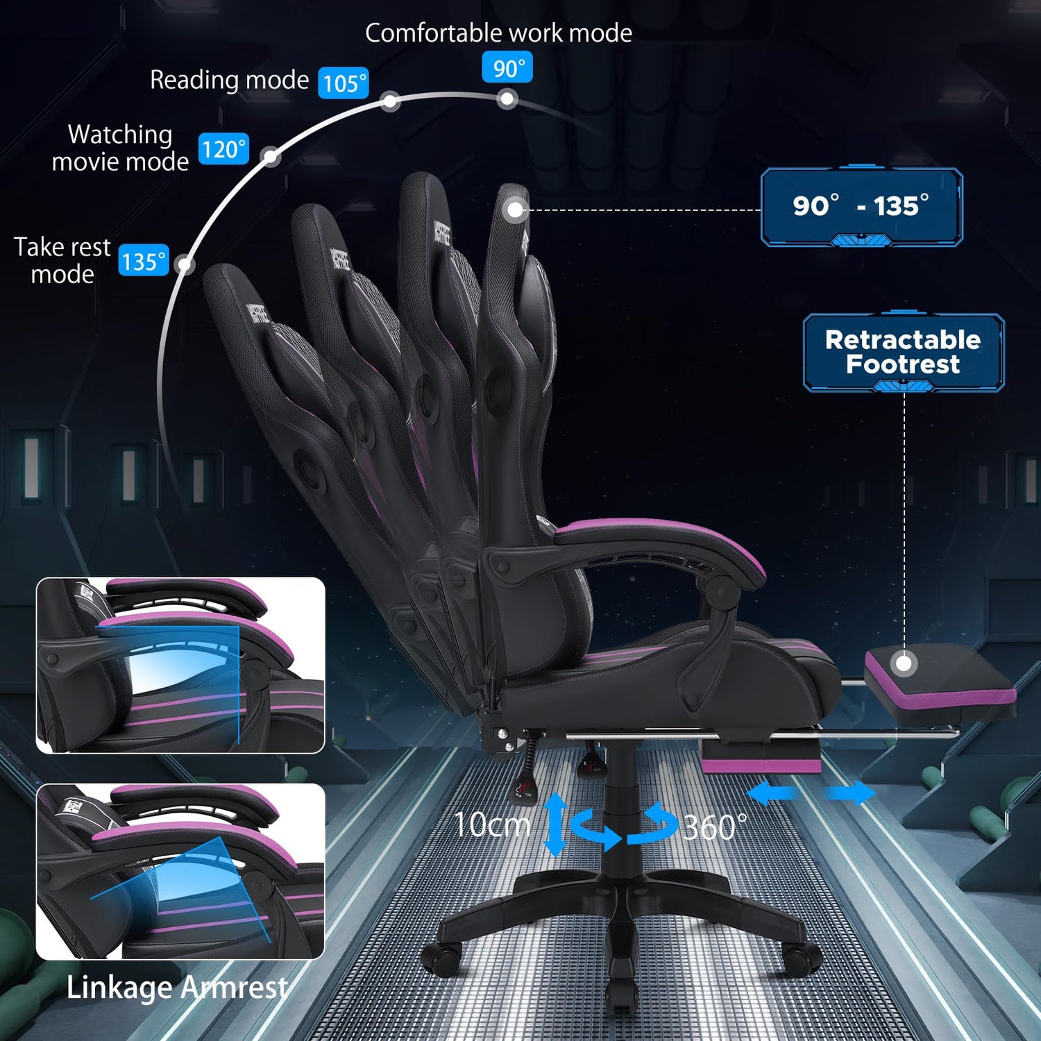 HOFFREE Gaming Chair with Speakers Massage Big and Tall Gaming Chairs with Footrest and Bluetooth for Adults 400lbs Reclining High Back Computer Desk Chair Purple and Black