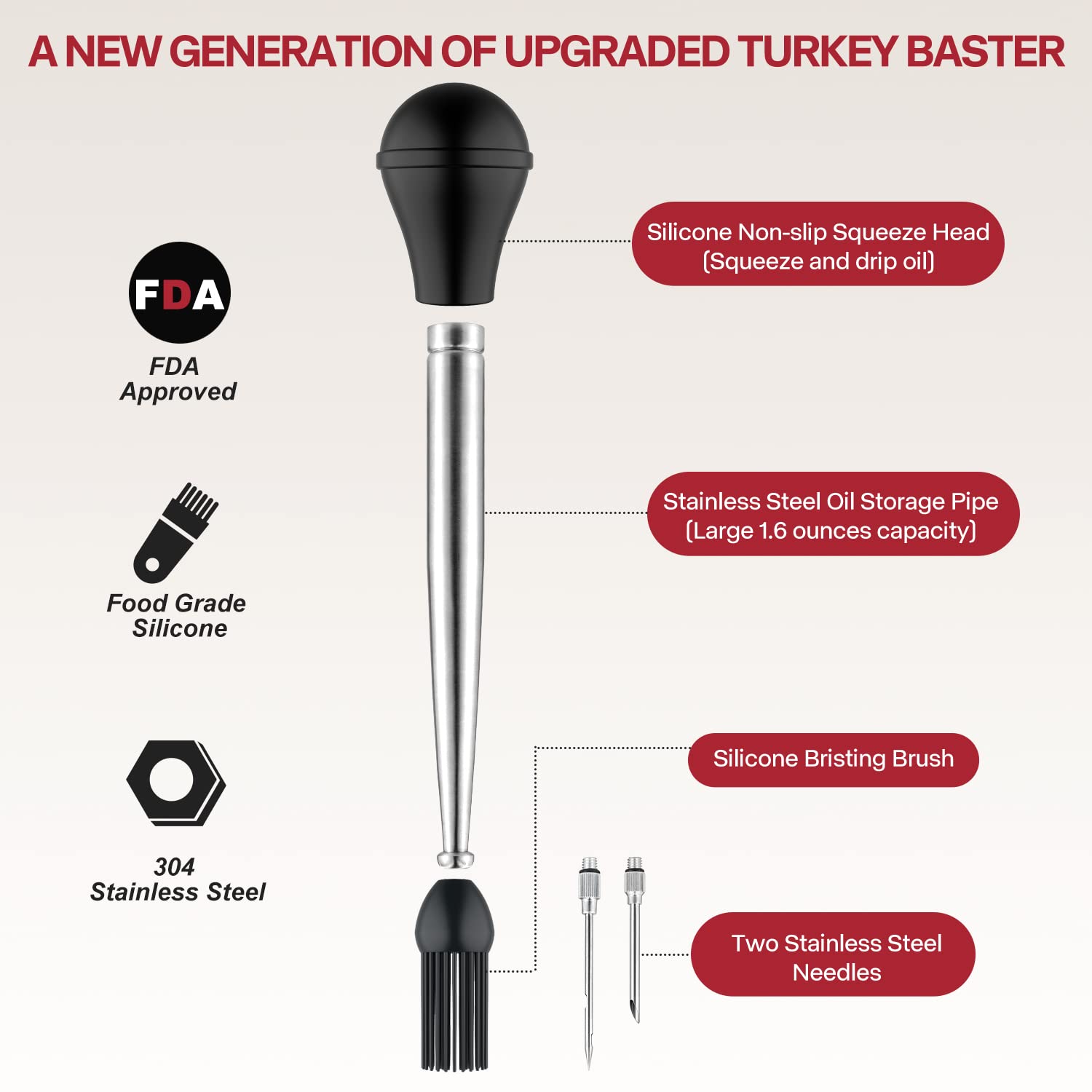 - Widely Use: Our turkey baster and injector set is perfect for roasting, BBQ, and more. Use it to separate fat from broth, inject marinades into meats, or even to baste seafood and vegetables. It's a must-have tool for any home cook or grill master!