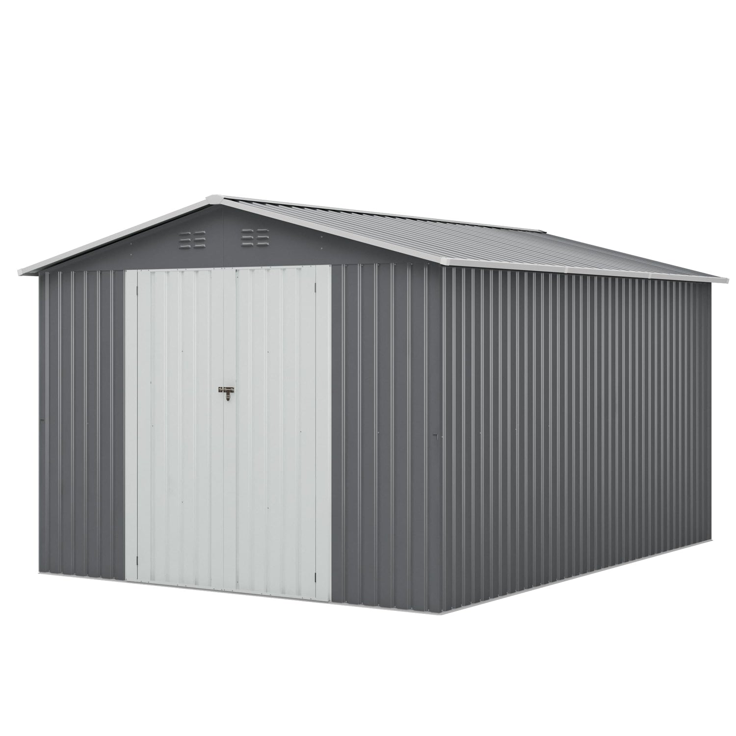 HOGYME 10x12 FT Outdoor Storage Shed, Large Metal Tool Sheds with Updated Frame Structure and Lockable Doors, Garden Shed for Backyard Garden Patio Lawn Grey