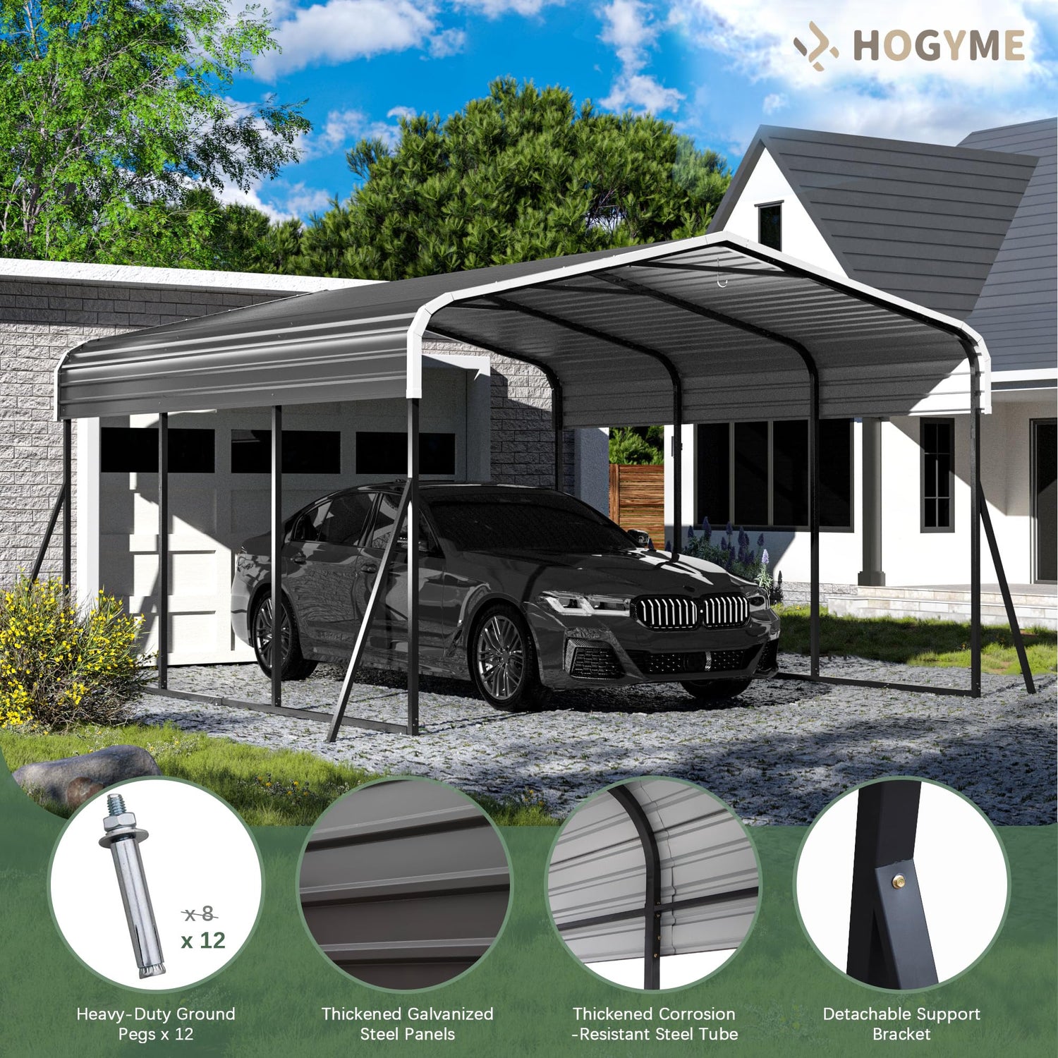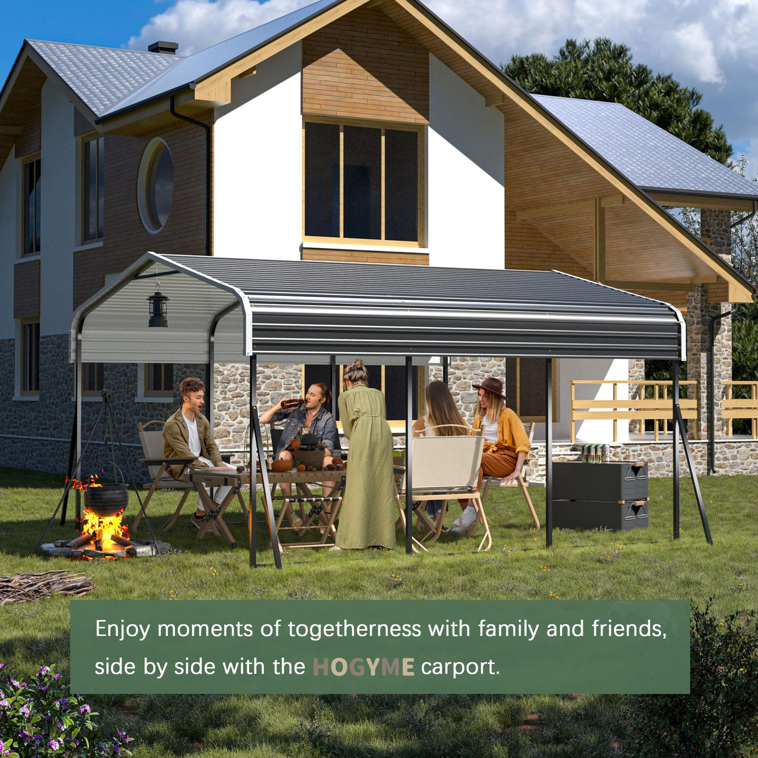 HOGYME 10x15 FT Heavy Duty Carport Canopy with Updated Frame Structure Galvanized Steel Roof and Enhanced Base, Metal Carport Garage for Pickup, Boat, Car and Tractors Grey