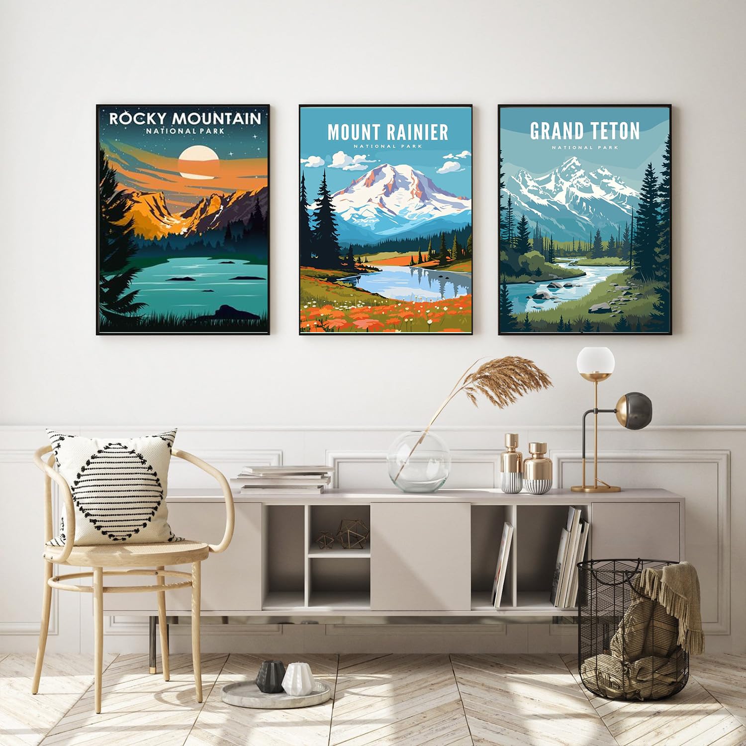 HOIYLDS 3 Pack Paint by Number for Adults Framed Canvas, National Park DIY Arts and Crafts for Adults Beginner with Wooden Easel, Paint Brushes, Acrylic Paint Set for Home Wall Decor, 9 * 12 Inch