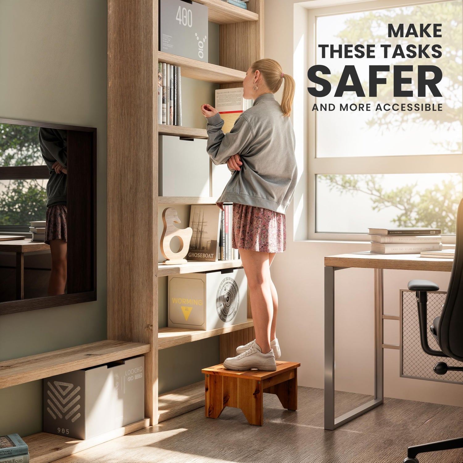 - Versatile Accessibility Tool: Whether for reaching high shelves or getting onto tall beds, this step stool offers a versatile solution for everyday tasks, reaching high kitchen shelves and cabinets. Making it an indispensable tool in the kitchen, bedroom, and beyond