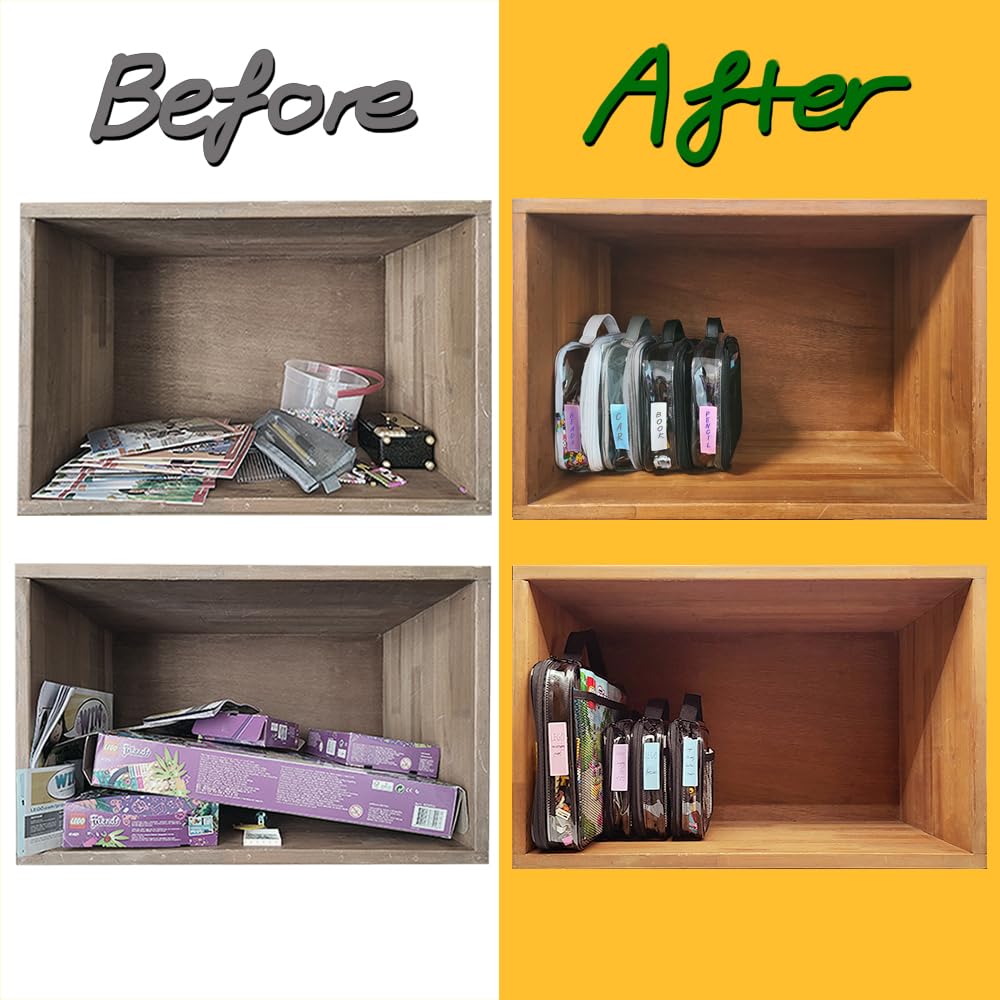 holay 4 Packs PVC Zippered Blocks Set, Toy, Clay, Board game Storage Organizer Case (Name Tag, Manual Pocket) (Black, Large)