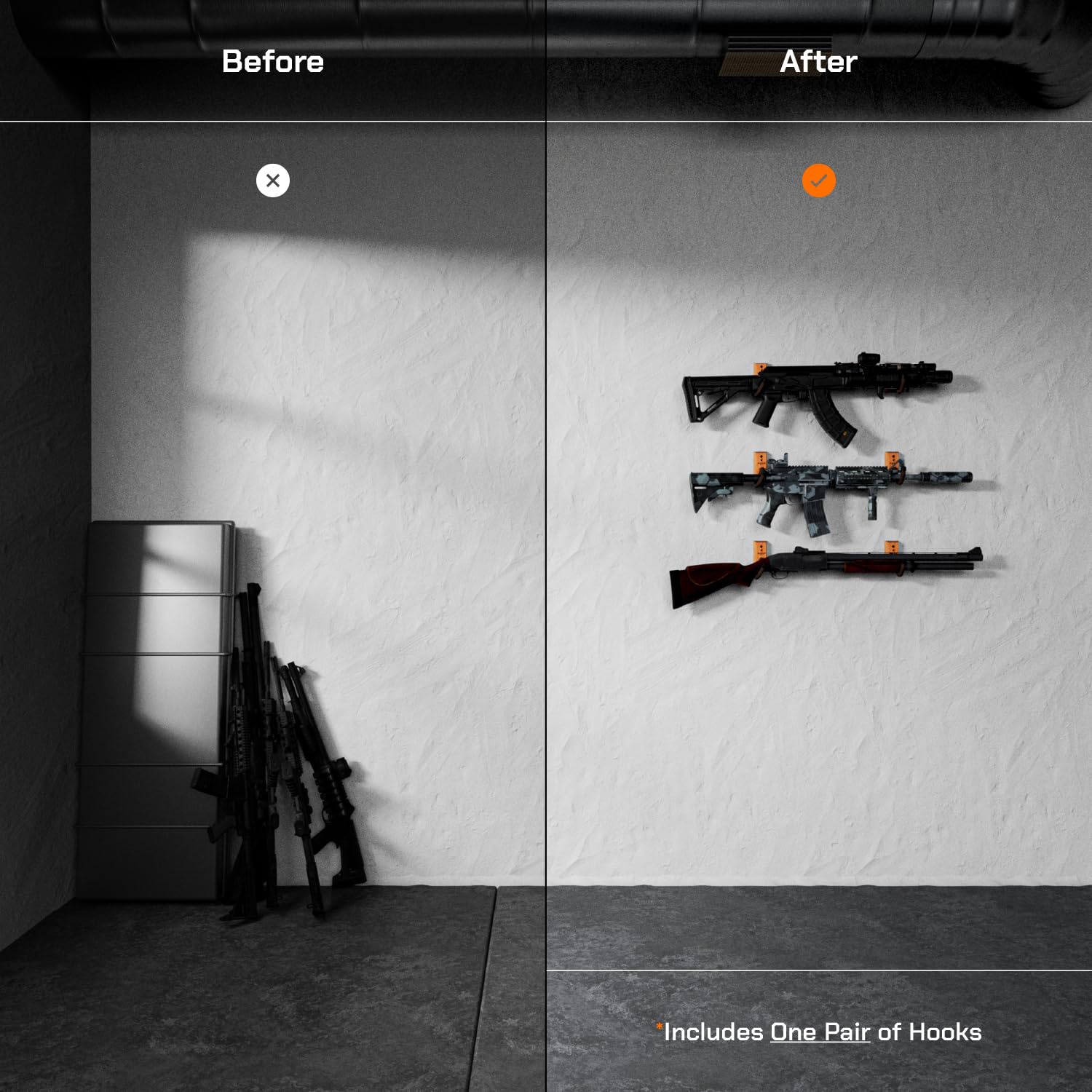 - ✔YOKE PIVOTS TO ACCOMMODATE VARIOUS BUTTSTOCKS – Protective padding gently and securely supports the firearm, unlike non padded wooden hangers that can leave scratches on your firearm; Deep cradle design prevents the gun from being improperly placed in the hanger