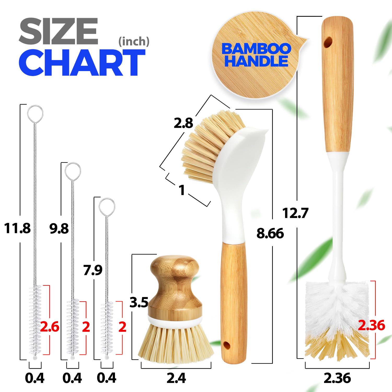 - Kitchen Dish Brush Set. Find immense joy in washing dishes with our kitchen cleaning brush kit. It includes a large bottle brush, a long handle brush for dishes, a palm scrubber bursh and 3 straw tube brushes. With a variety of kitchen brushes, you'll easily take on everyday dish cleaning removing even the most stubborn dirt.