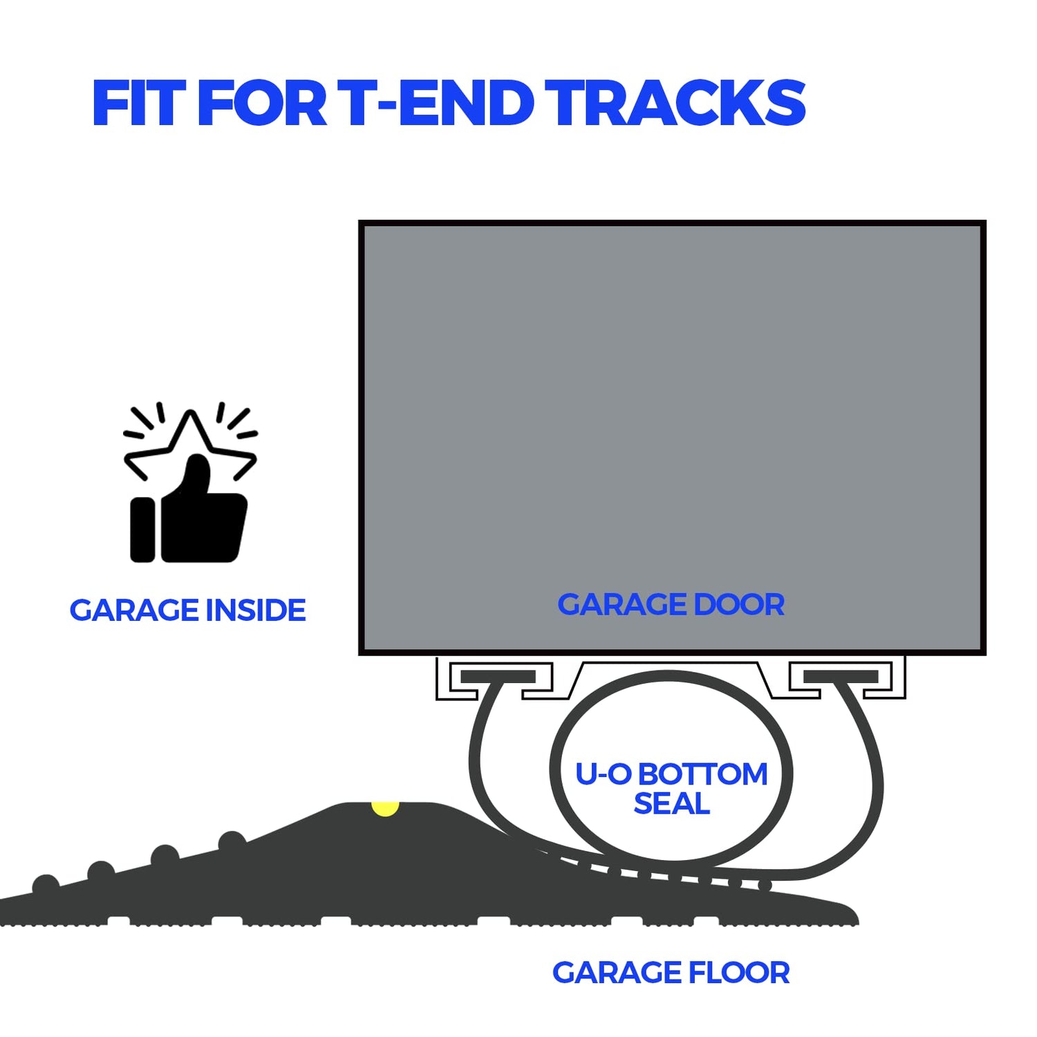- 【The Latest U+O Design】This garage door bottom seal ensures a tight fit with your existing garage door when closed - keeping out cool drafts in the winter and keeping heat out in the summer, saving you energy and money. Fit for most garage door with T-end tracks(5/16 Inch T-End, 4 1/8 Inch Width). Kindly measure your product dimension and confirm the same.