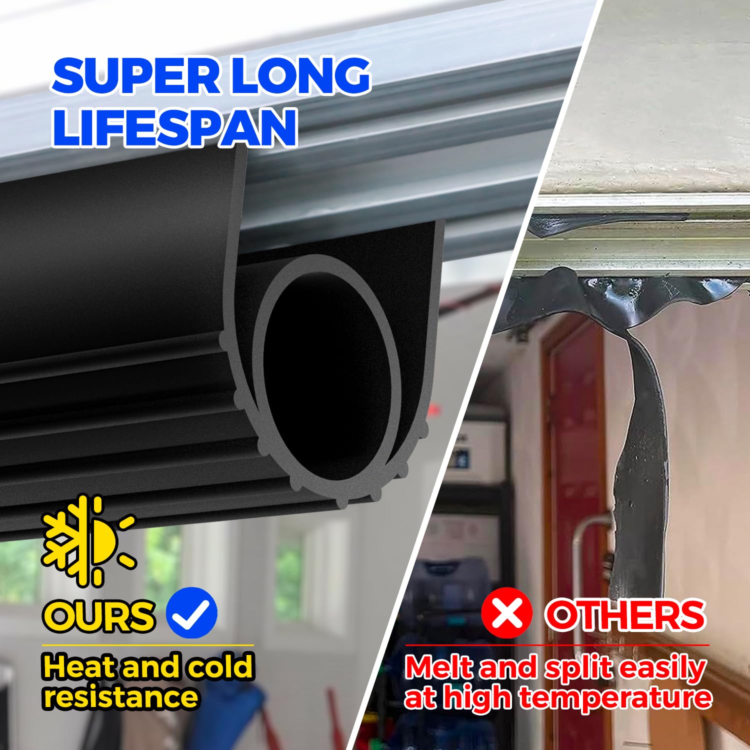 - 【Long-Lasting 】Crafted from premium materials, this garage door weather stripping is built to withstand the test of time. It resists cracking, tearing, and fading, ensuring it remains effective and reliable for years to come.