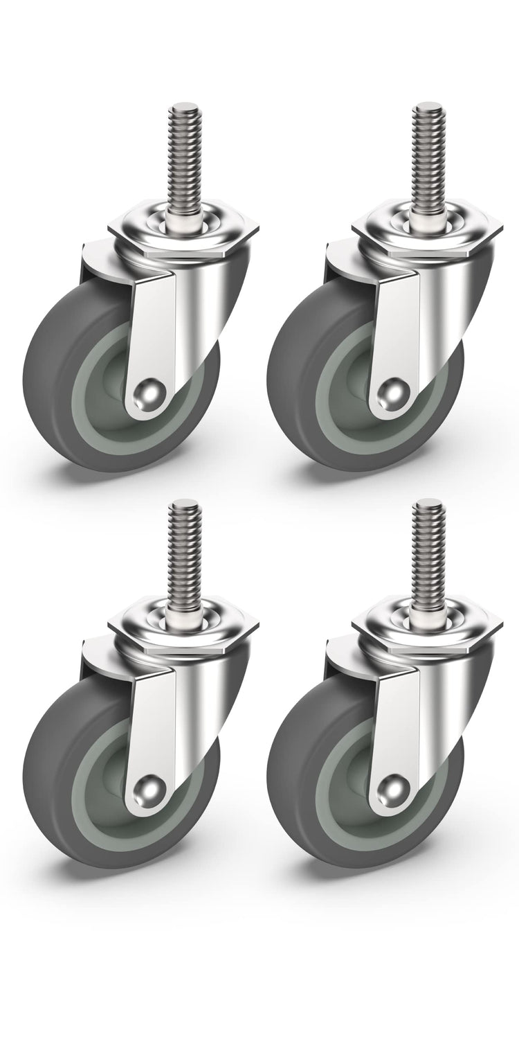 - Screw rod specification: 3" without brakes Swivel Casters, 3/8" -16UNC x 1-1/2" (Stem Diameter 3/8", Stem Length 1-1/2") Threaded Stem Casters, Castors with No Noise Set of 4.