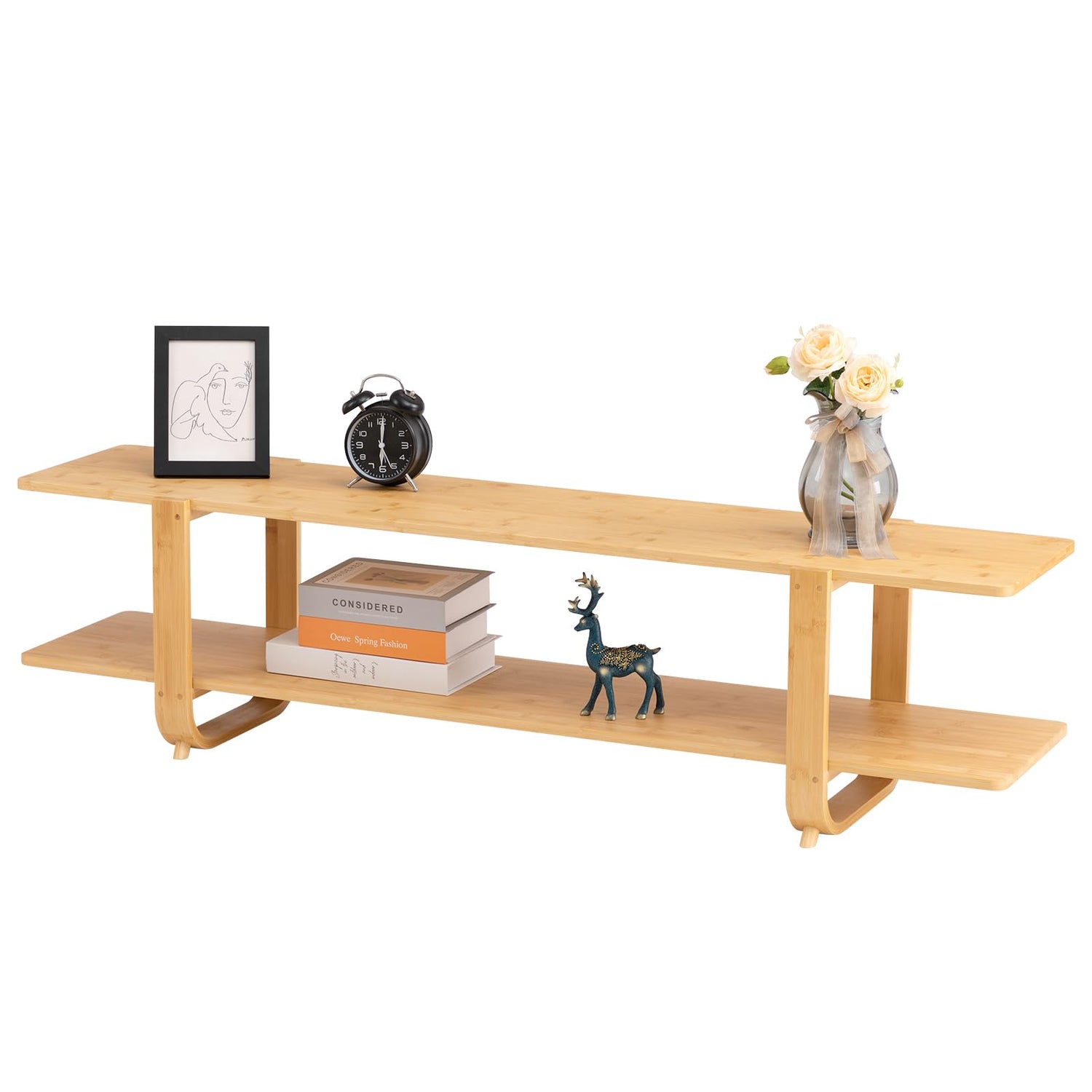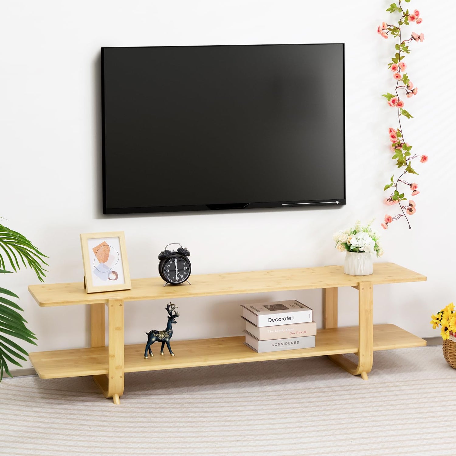 HollyHOME Bamboo TV Stand with Storage for TVs up to 65'', Modern Entertainment Center with 2 Open Shelf, Accent TV Media Console Table for Living Room, Bedroom, 55"(L), Burlywood