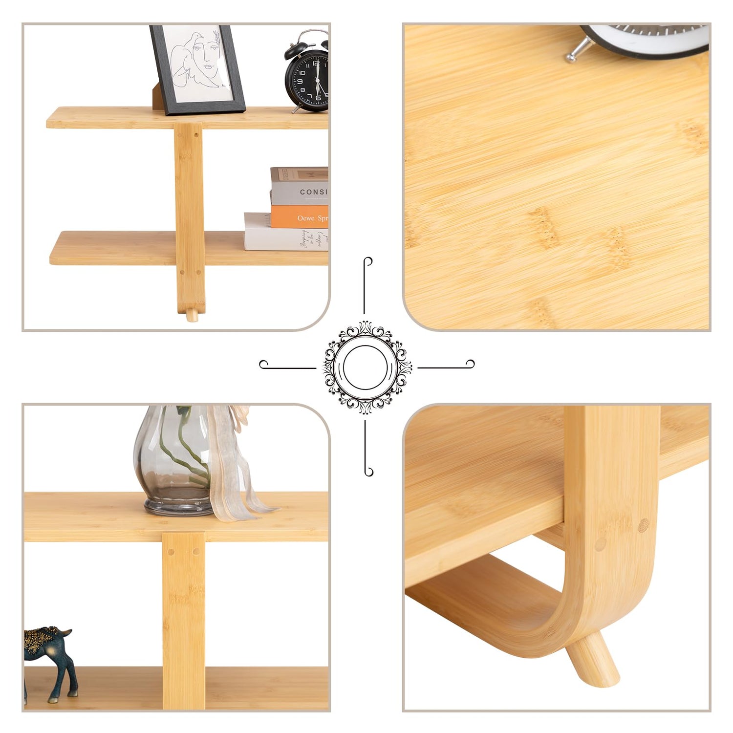 This TV stand is made of bamboo, and the appearance of the original wood color is simple, elegant and fashionable, so it can be matched with the decoration style of the living room and bedroom and other furniture. It can be used as a TV console stand table in the living room, a console table in the hall, and a coffee table at home.