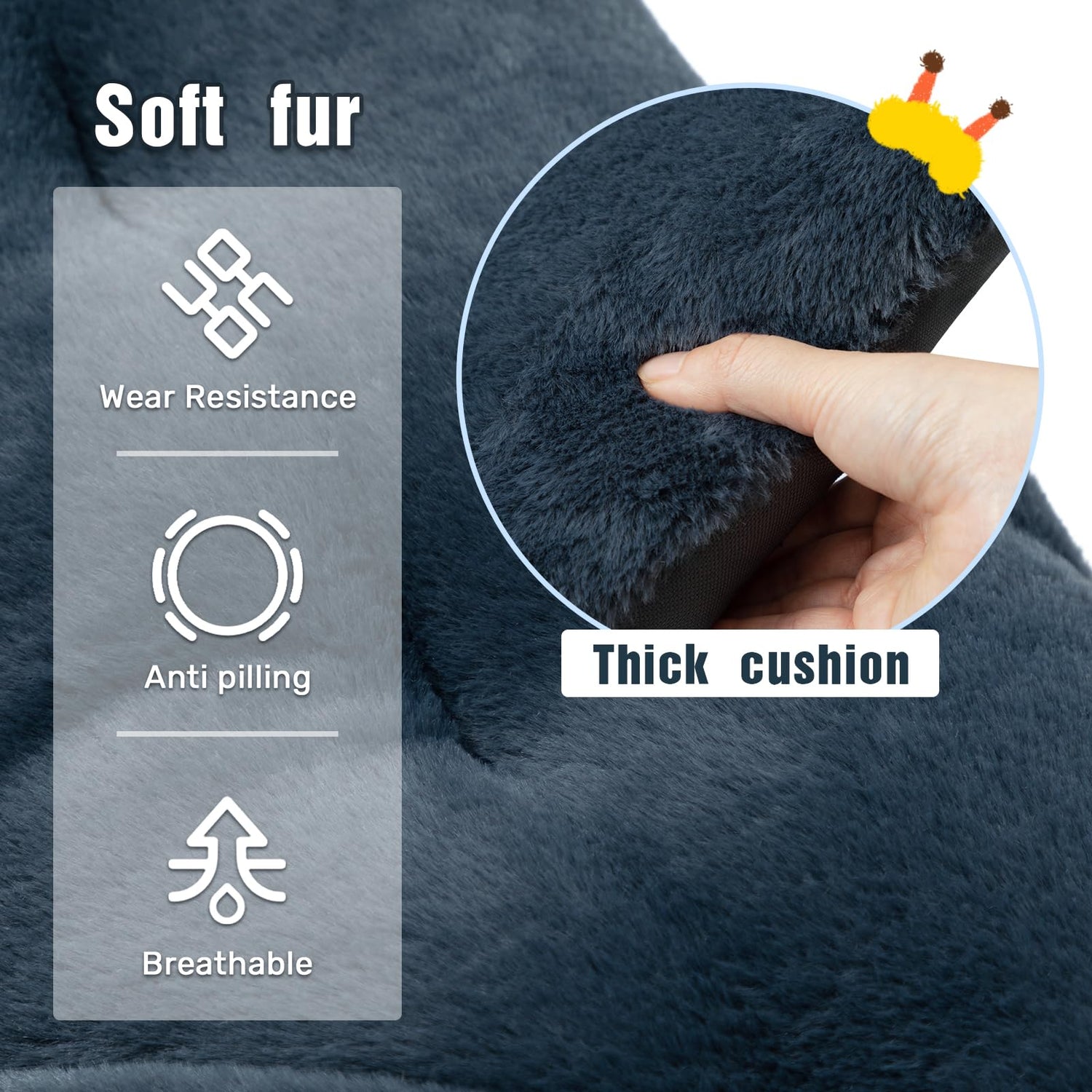 - Cover material: The surface is covered with skin friendly faux fur.