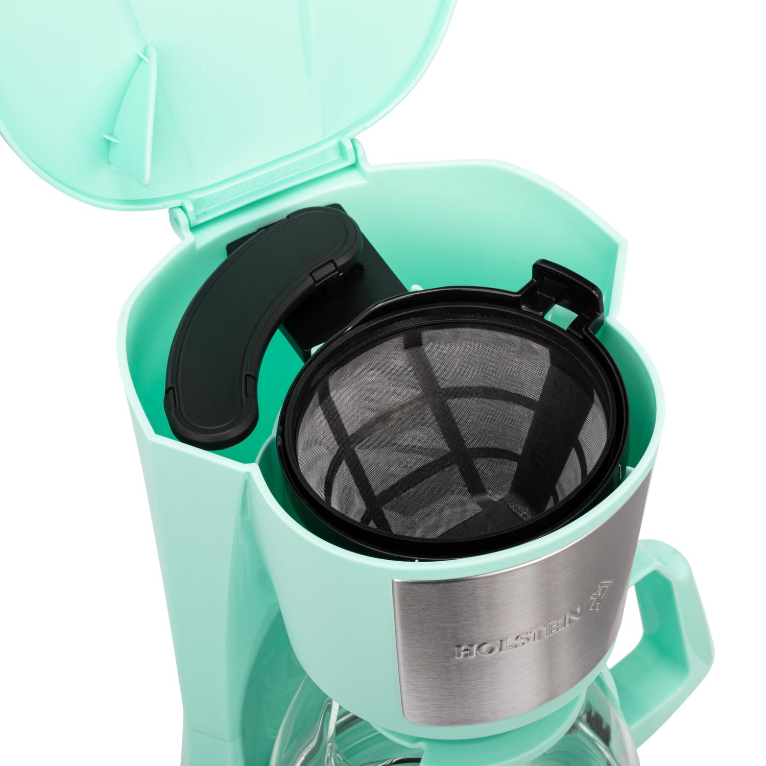 Holstein Housewares - 5 Cup Drip Coffee Maker - Convenient and User Friendly with Permanent Filter, Borosilicate Glass Carafe, Water Level Indicator, Auto Pause/Serve and Keep Warm Functions, Mint