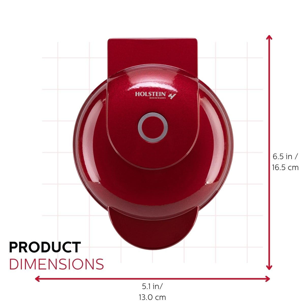 Holstein Housewares Personal Non-Stick Waffle Maker, Metallic Red - 4-inch Waffles in Minutes