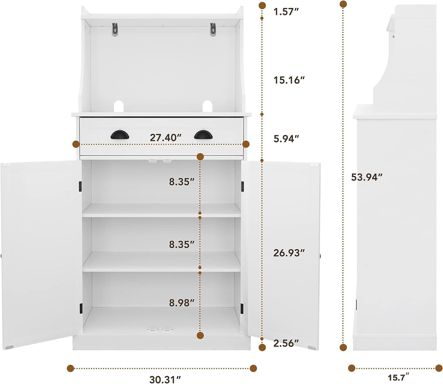 - 【Sturdy and Safety】Our kitchen microwave pantry cabinet is made of premium MDF board, the frame of pantry cabinet is durable and sturdy. The surface is painted with special waterproof coating makes the surface smooth and flat for easy cleaning. We have designed a semicircular metal handle for the drawer and a double anti-tipping feature to keep the family members safe.
