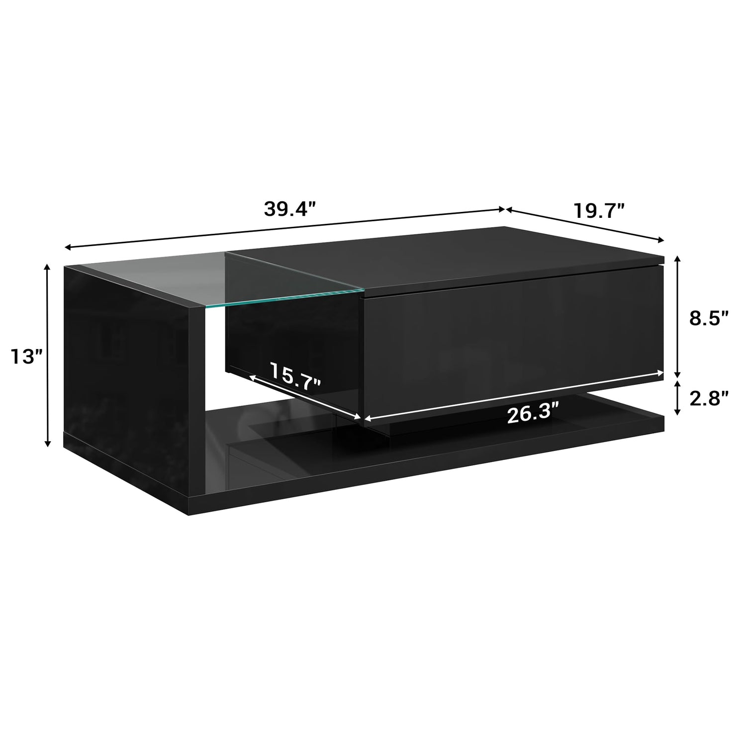 - MINIMALIST MODERN DESIGN: Featuring a sleek high-gloss UV black finish and a transparent tempered glass top, this coffee table adds a futuristic and sophisticated touch to your home. Its clean lines make it a perfect centerpiece for modern, contemporary, or gaming-inspired living rooms.