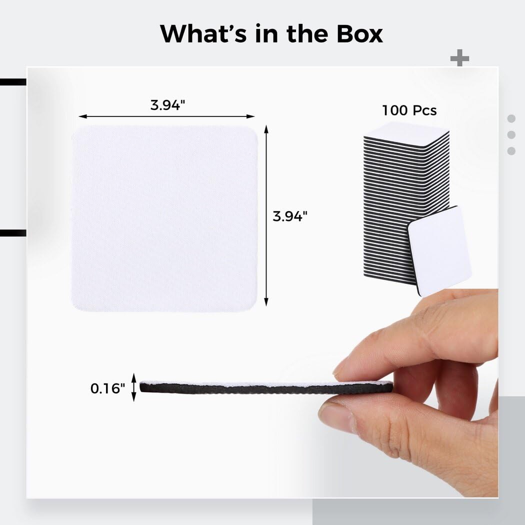 - 【A Set of 100 Square Coasters】The package includes 100 blank sublimation coasters, and each one measures about 3.94 x 3.94 inches, providing the perfect size for your cups. The abundant quantity and appropriate size ensure you're well-equipped for daily use, enhancing your drinking experience while adding a personalized touch to your table.