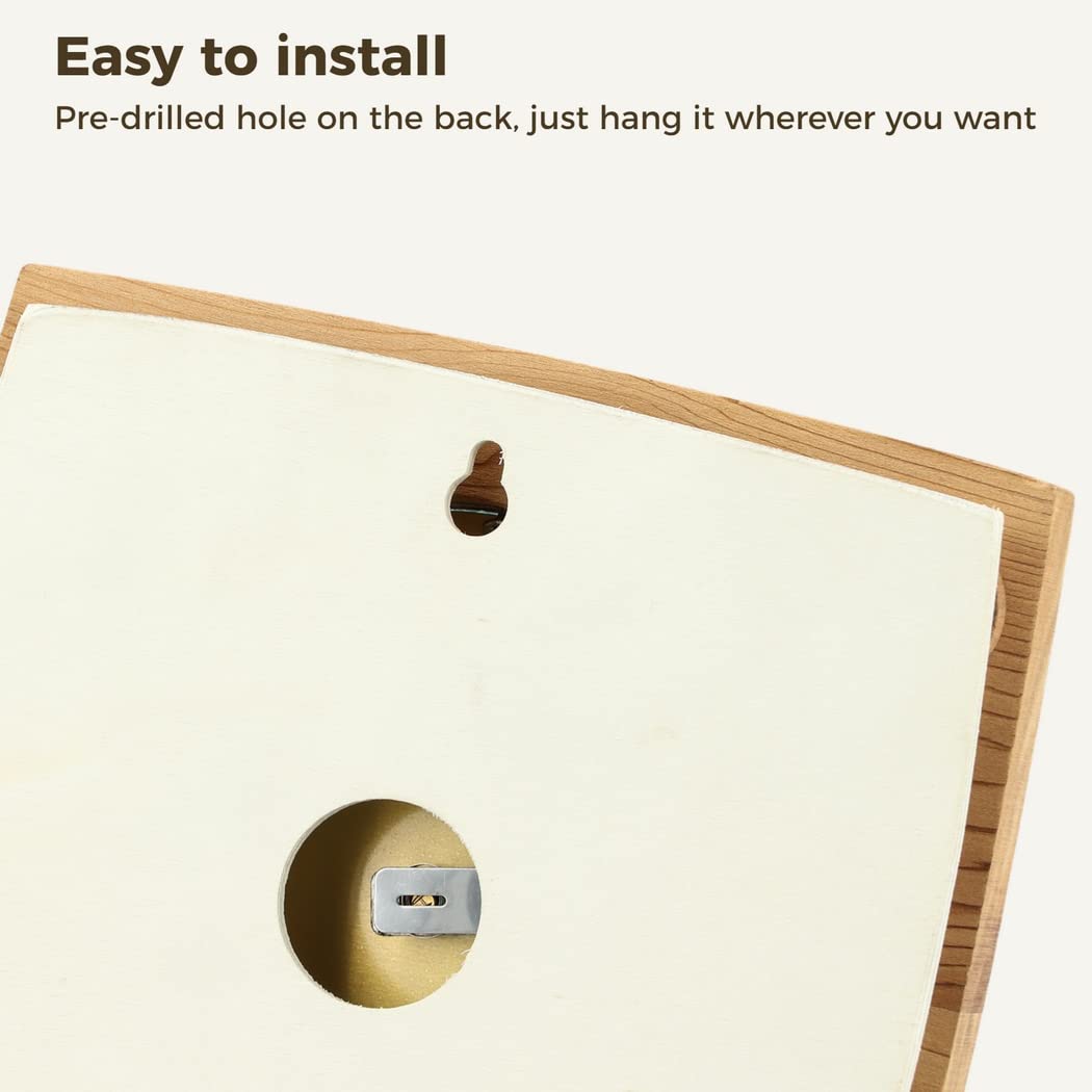 - Install in Seconds: There is a pre-drilled hole on the back of the wooden thermohygrometer, and a screw is included, all you need to do is find a place you want to use the thermohygrometer and drill a hole and hang the thermohygrometer to the wall, very easy to install!