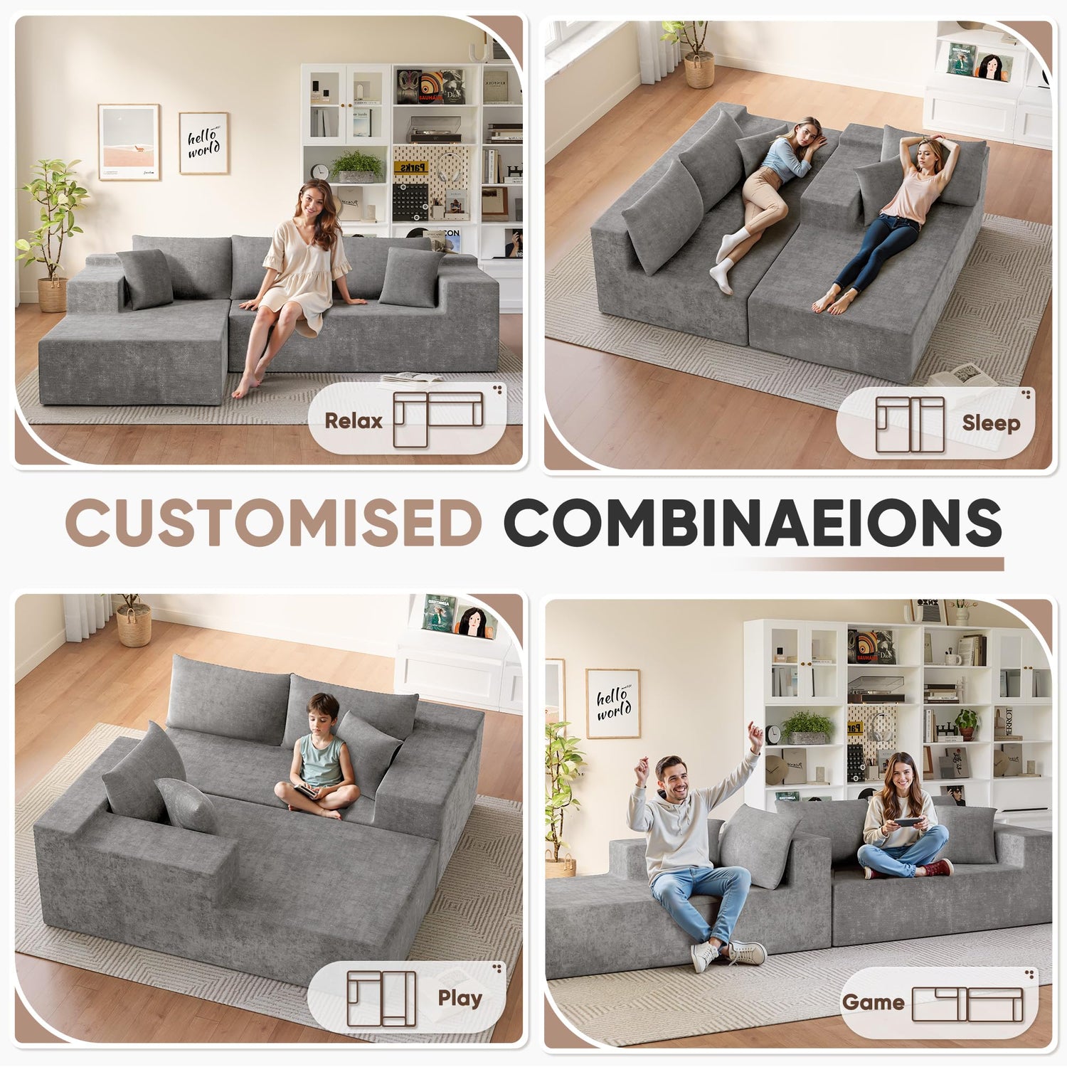 - Modular Free Combination: The modern modular sofa has a flexible design that can be freely rearranged into various configurations to fit your space. Easy to navigate through narrow hallways and tight doorways, say goodbye to relocation issues and ensure optimal space utilization. Whether you're furnishing a large open space or a compact apartment, our boneless sectional sofas easily adapt to your changing needs and personal style.