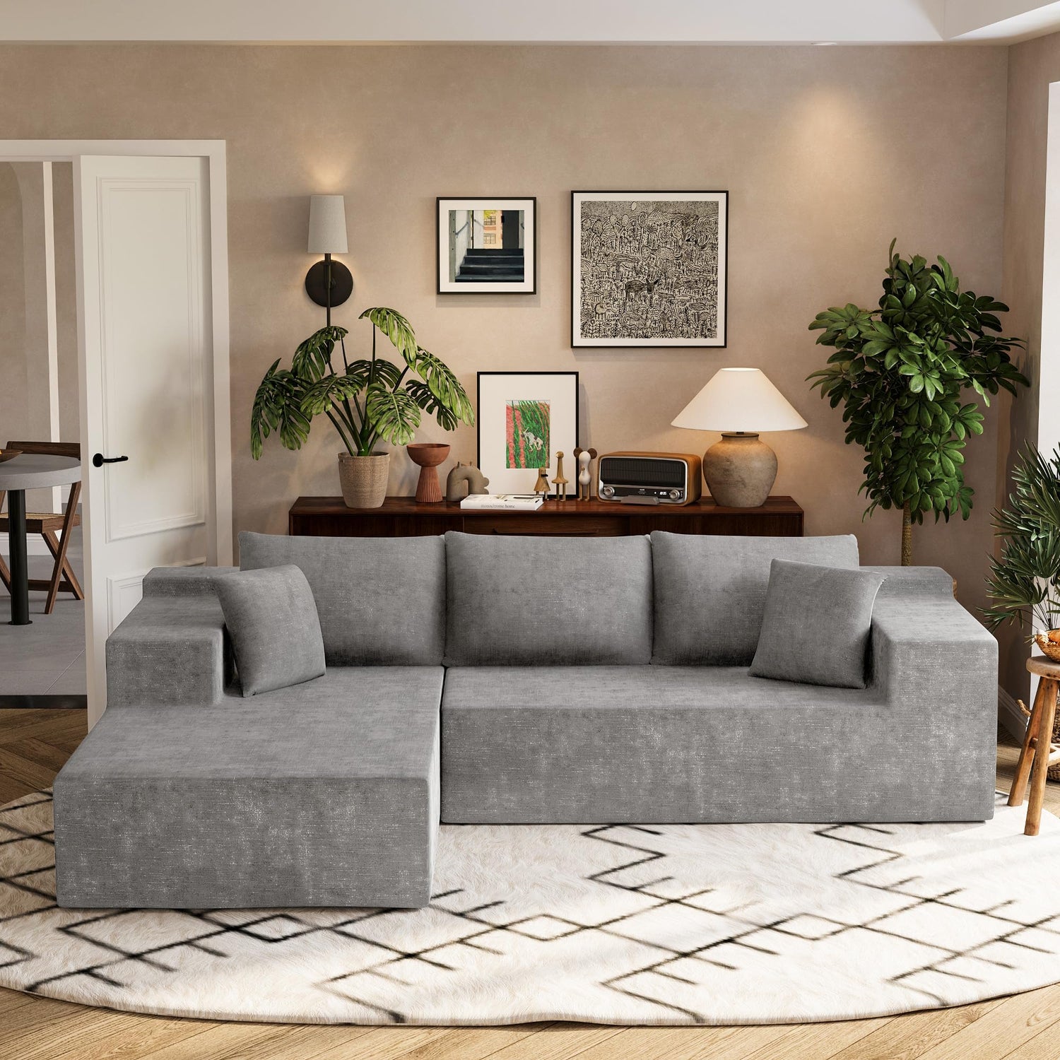Homall 108" Modular Sectional Sofa, Boneless Couch with L-Shape Chaise, Cloud Couch with Deep Seat Upholstered, No Assembly Required for Living Room, Bedroom (Chenille, Grey)