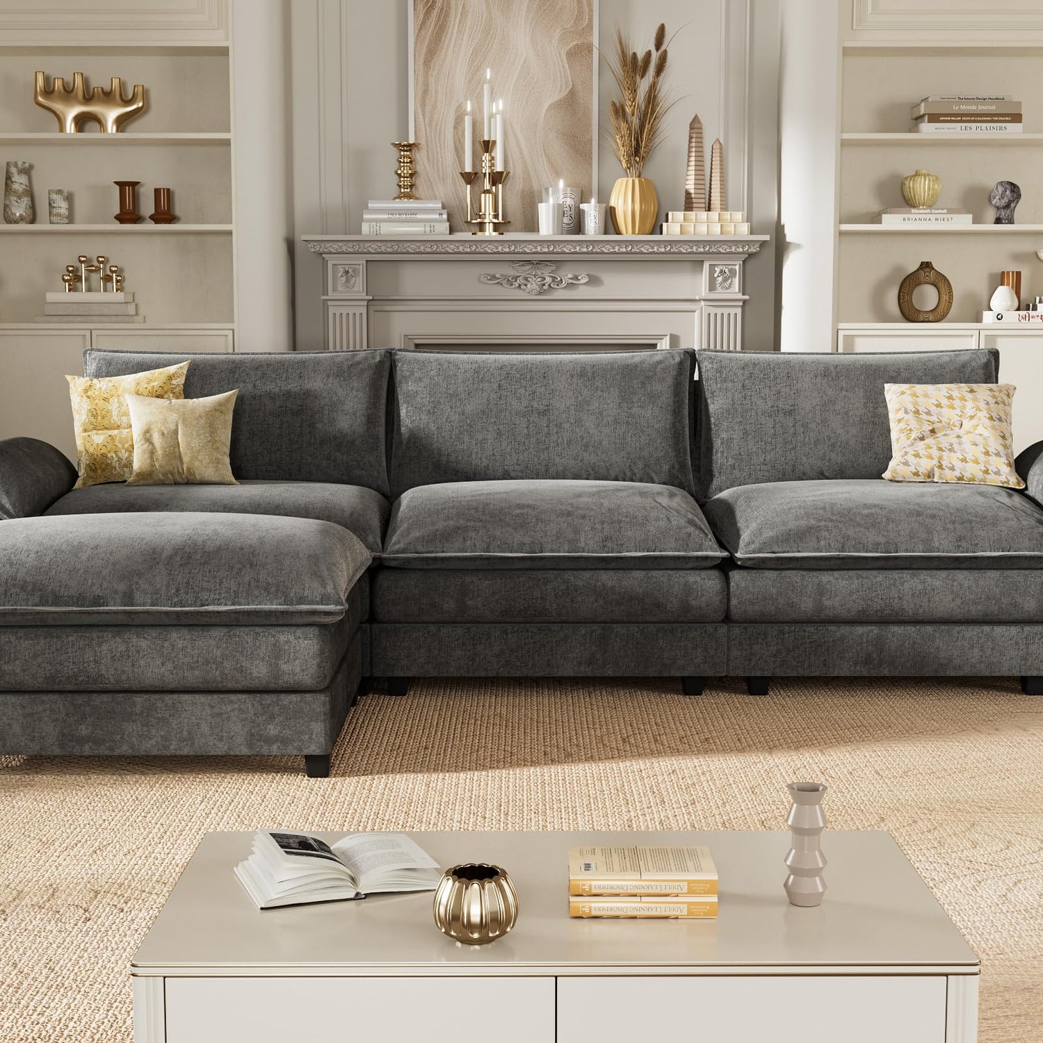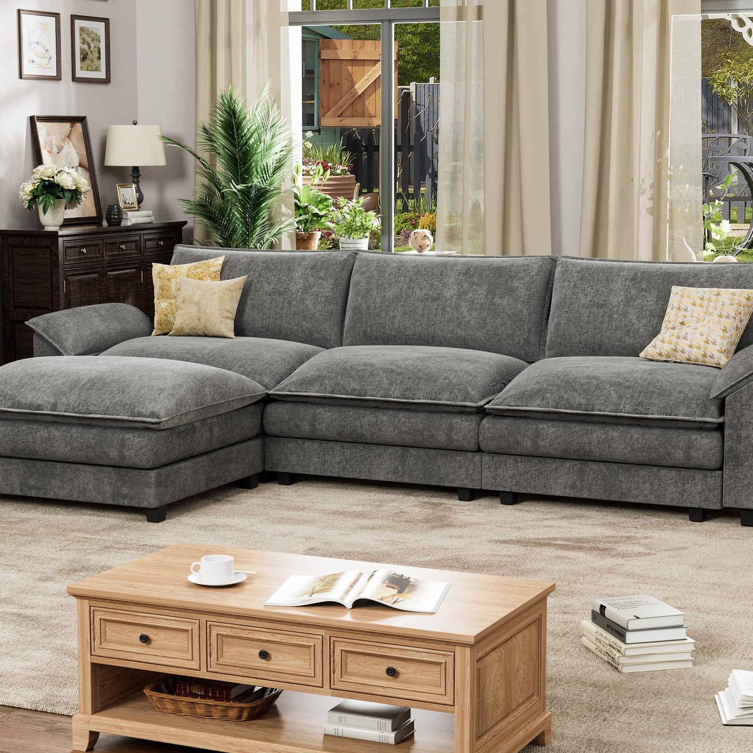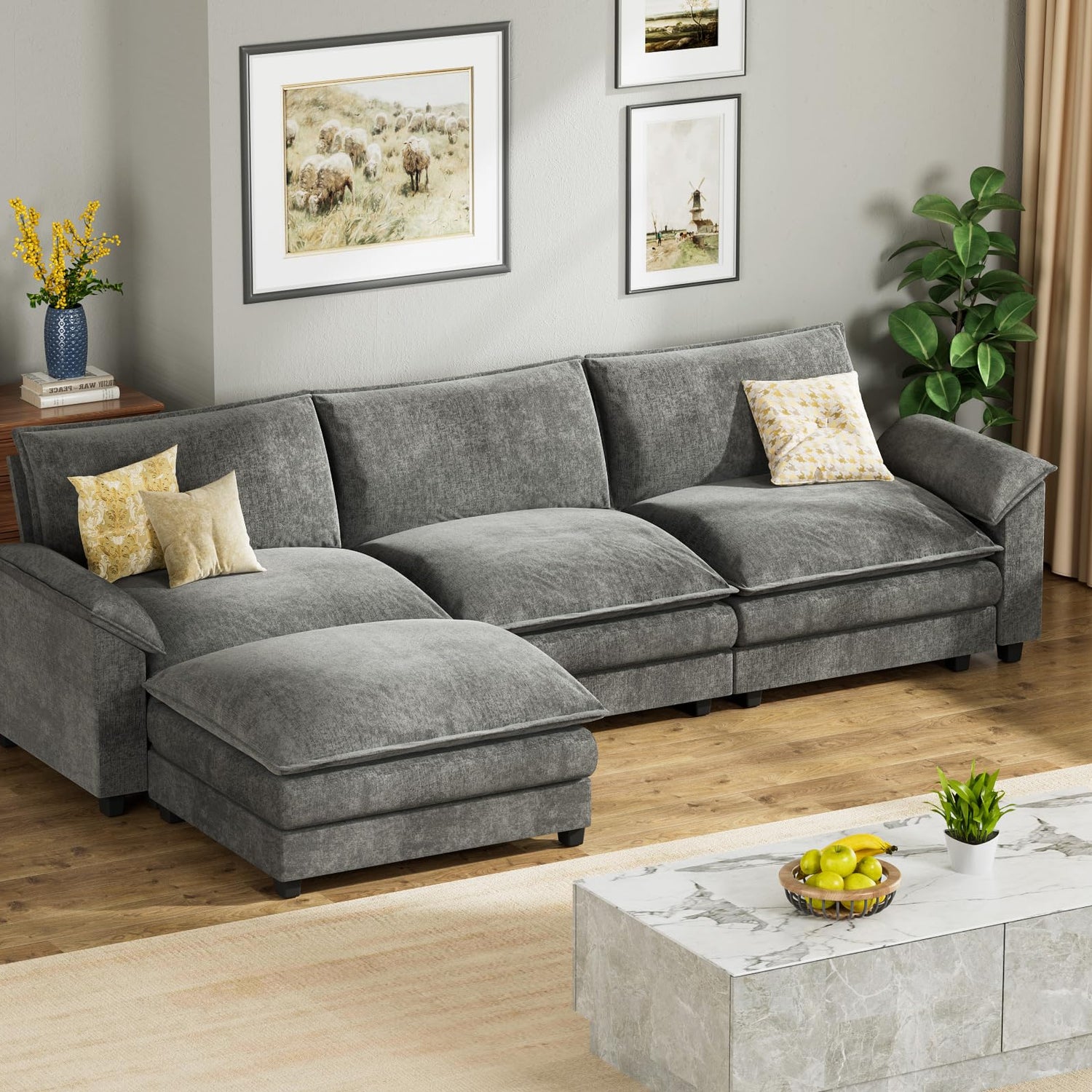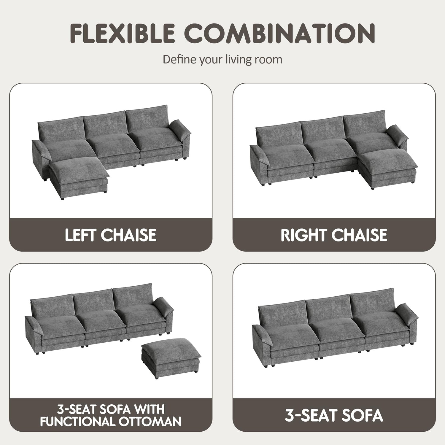 Homall 119" Modular Sectional Sofa, L Shaped Sofa Couch with Reversible Ottoman, DIY Combination Chenille Deep 3-Seat Cloud Couch for Living Room, Apartment (L Shaped Sofa, Grey)