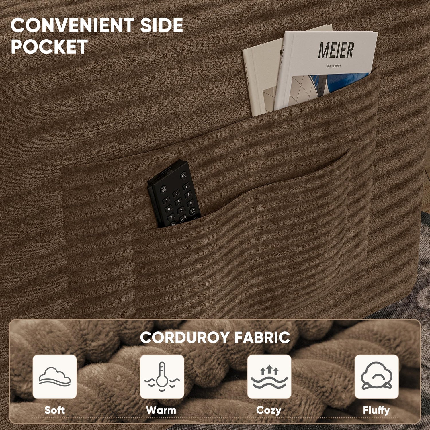 - [Premium Fabric] Crafted from corduroy fabric, this sofa offers soft comfort while maintaining breathability and stain resistance. No need to worry about perspiration from prolonged sitting or pets causing stains or scratches. You and your furry friends can relax together on the sofa and enjoy cozy moments.