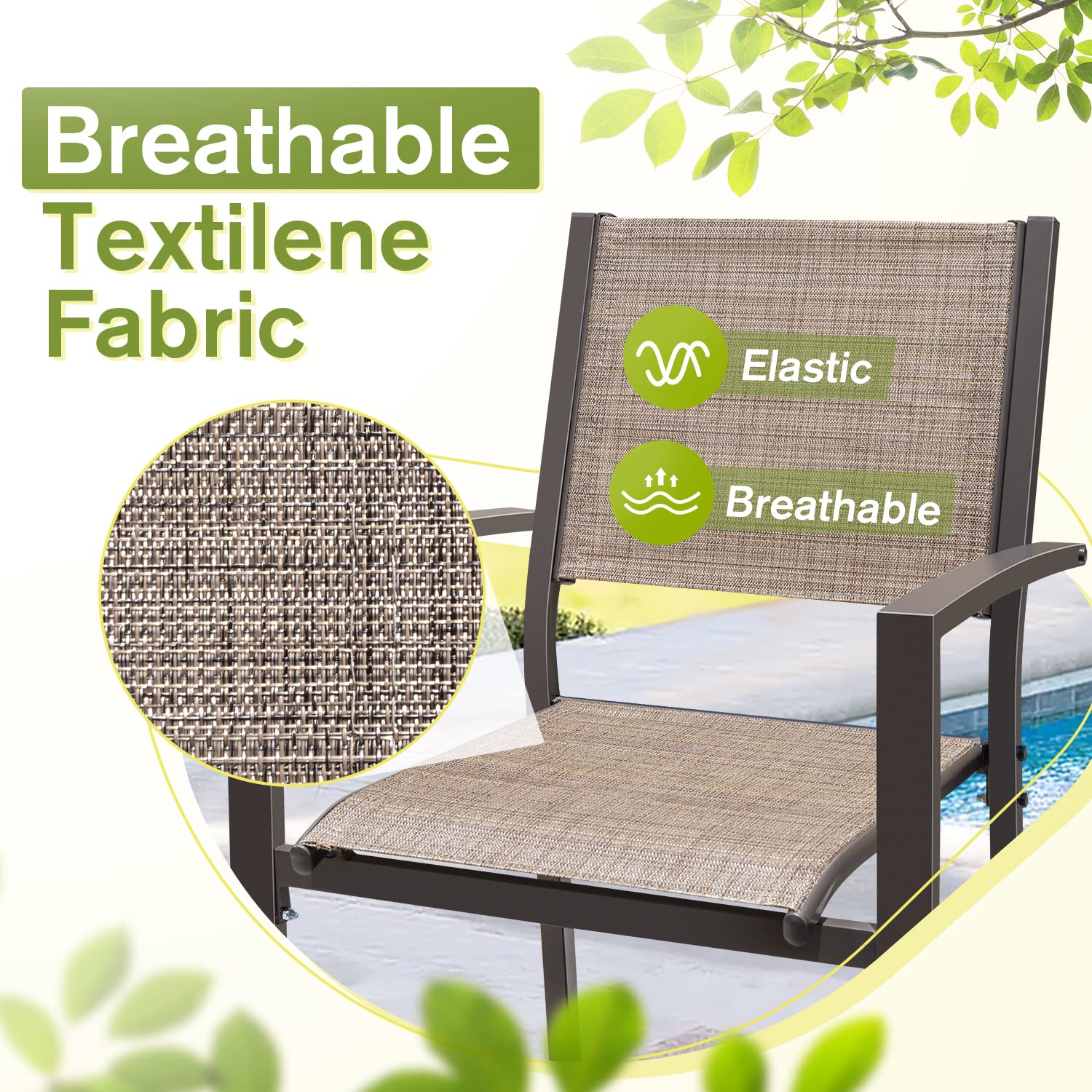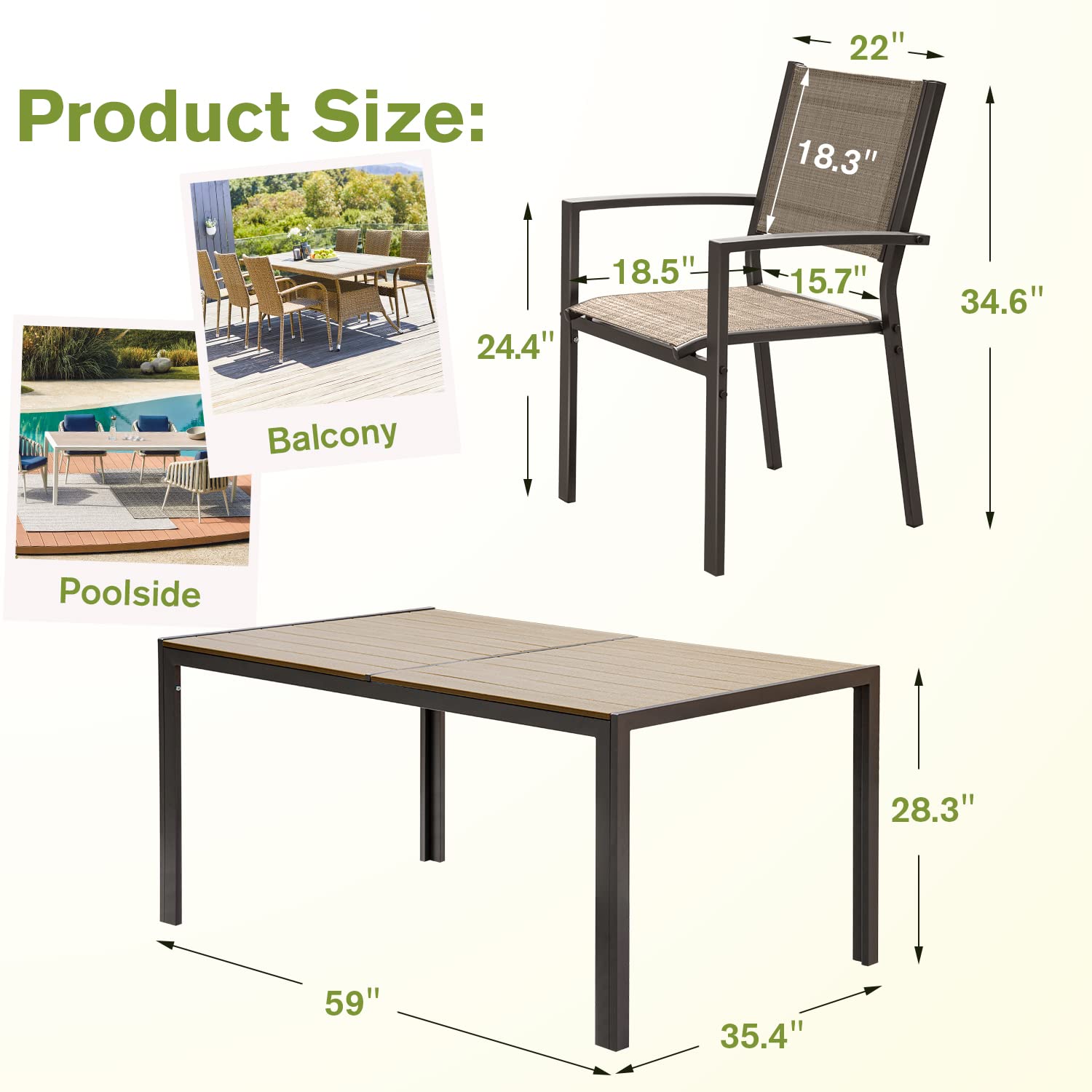 Homall 7 Pieces Patio Dining Set Outdoor Furniture with 6 Stackable Textilene Chairs and Large Table for Yard, Garden, Porch and Poolside, Beige