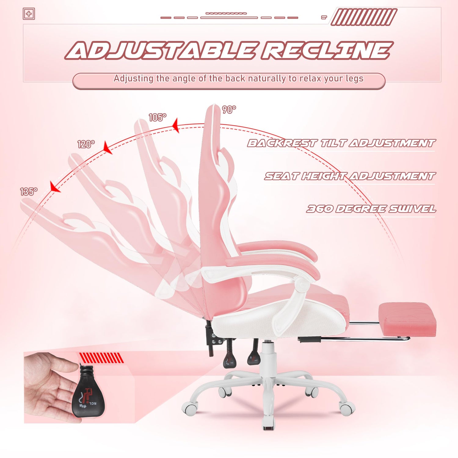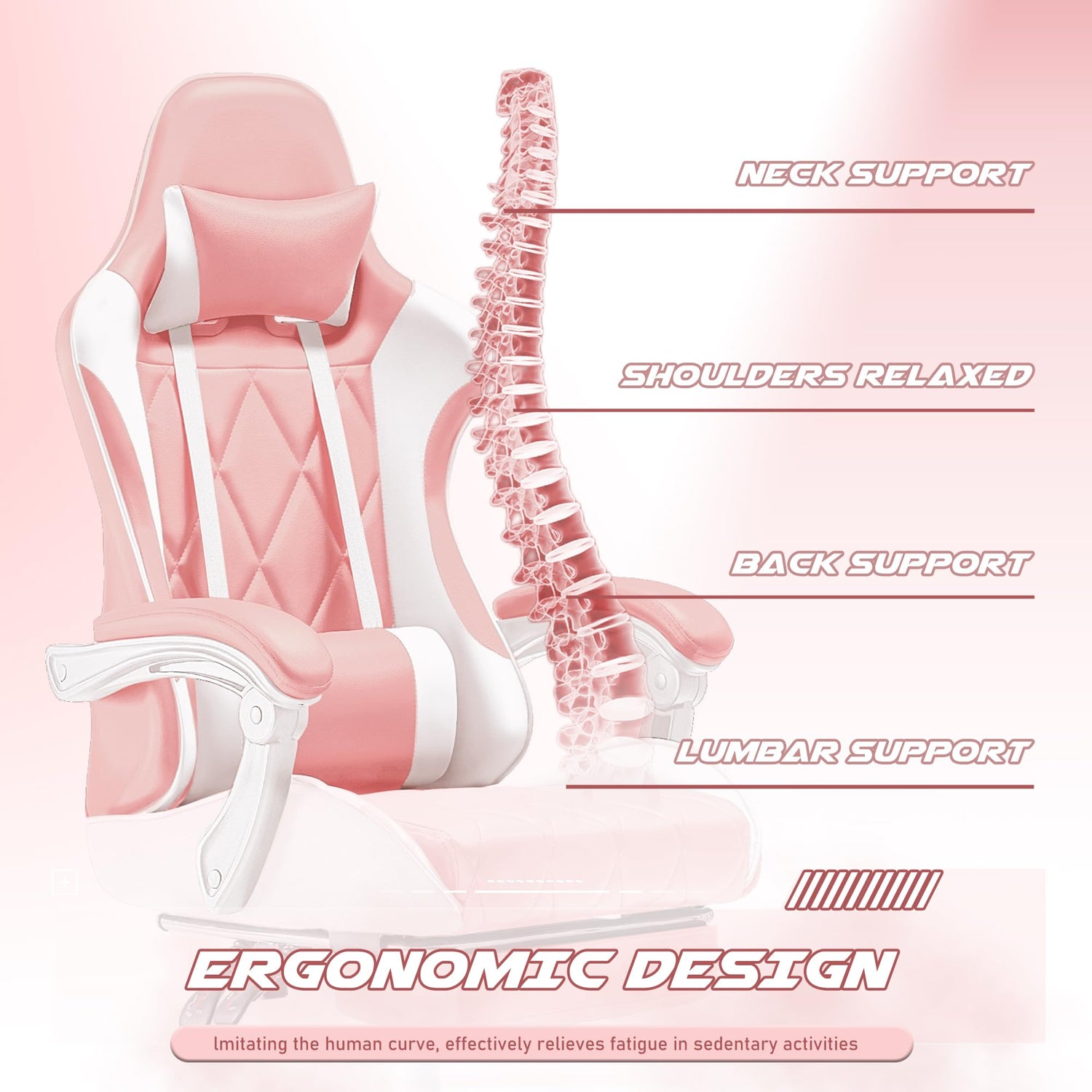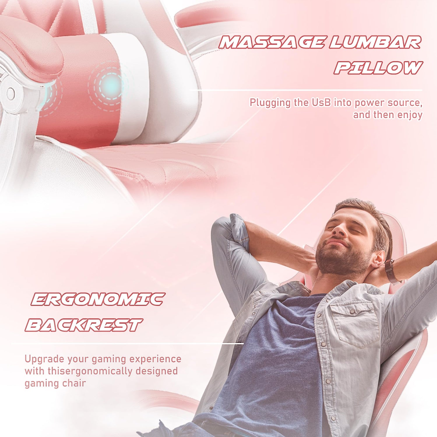 Homall Gaming Chair, Computer Chair with Footrest and Massage Lumbar Support, Ergonomic High Back Video Game Chair with Swivel Seat and Headrest (Pink)