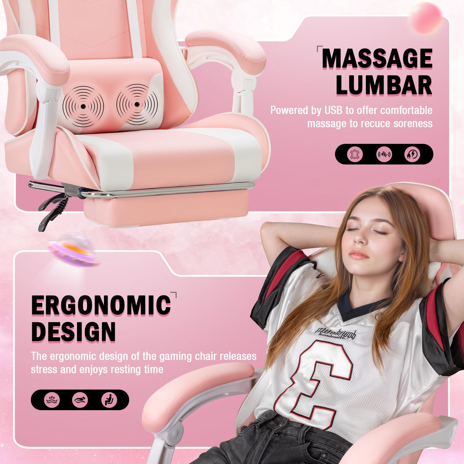 Homall Gaming Chair, Video Game Chair with Footrest and Massage Lumbar Support, Ergonomic Computer Chair Height Adjustable with Swivel Seat and Headrest (Pink)