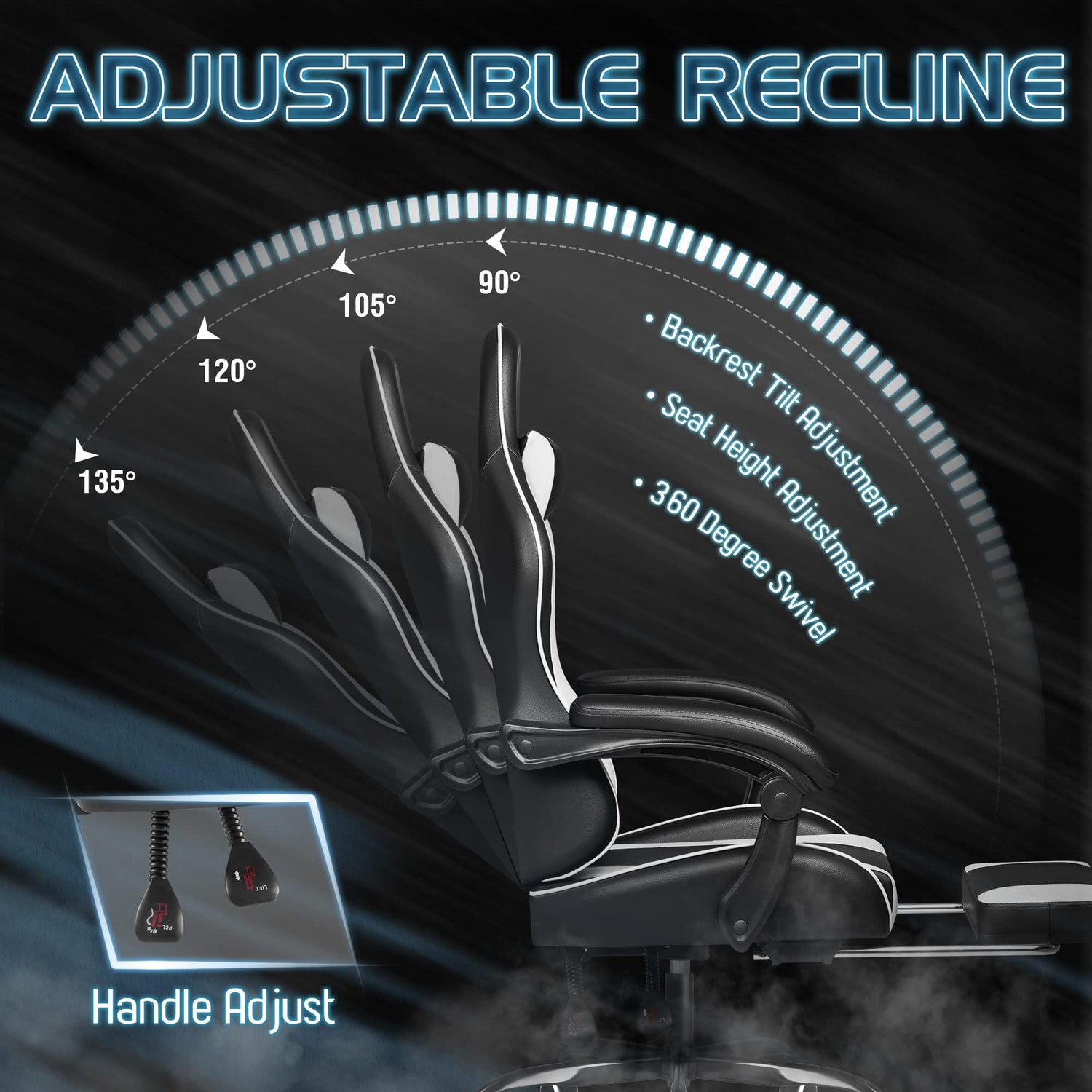 Homall Gaming Chair, Video Game Chair with Footrest and Massage Lumbar Support, Ergonomic Computer Chair Height Adjustable with Swivel Seat and Headrest (White)