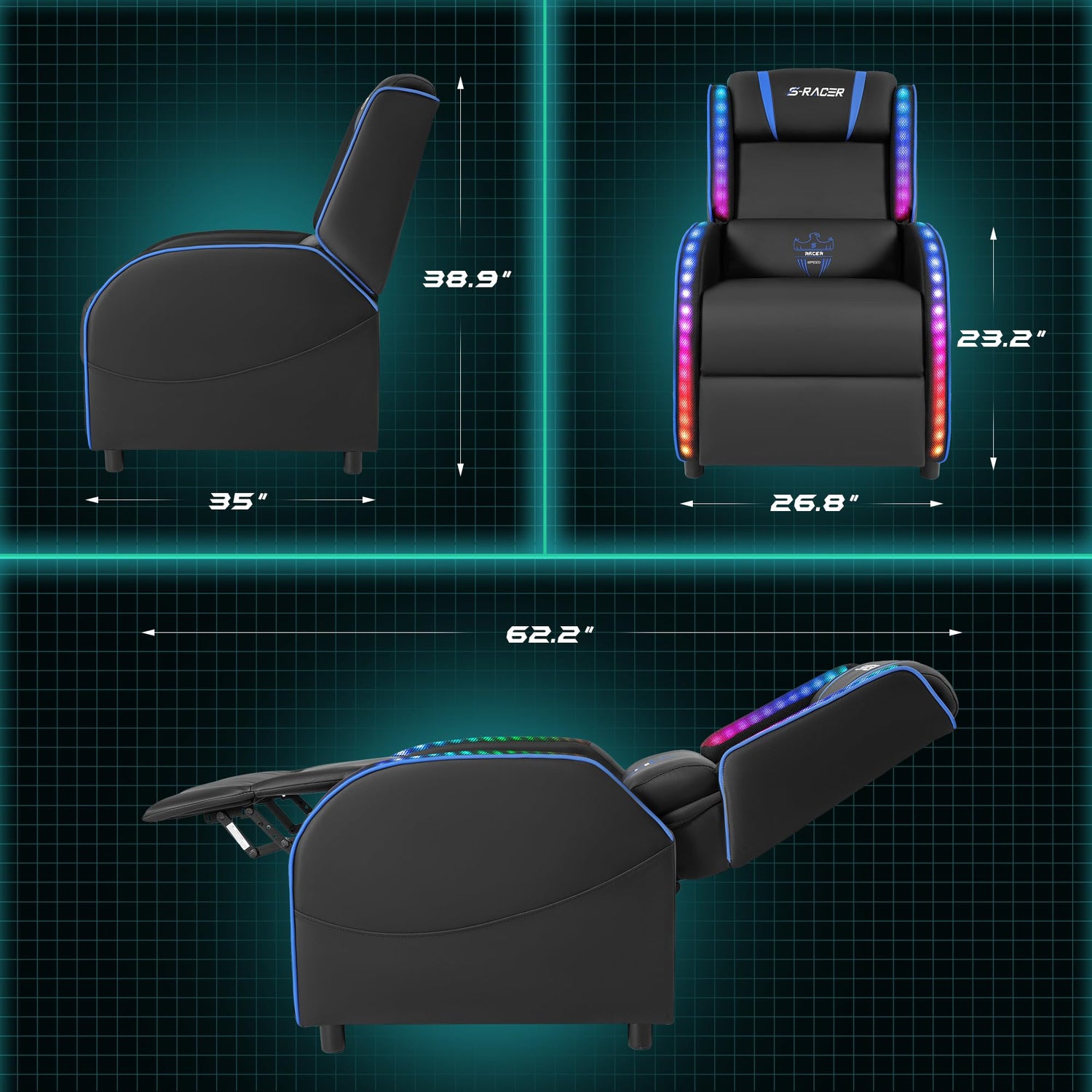 Homall LED Gaming Massage Recliner Chair Racing Style Single Living Room Sofa Comfortable Ergonomic Home Theater Seating (Blue)