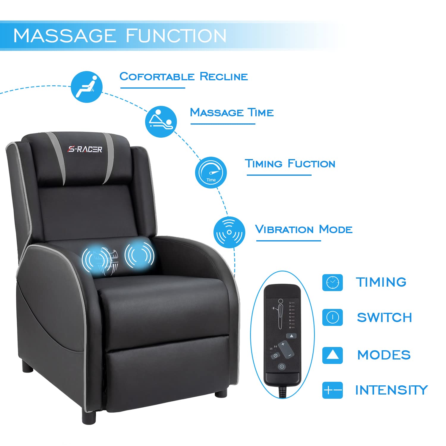 Homall Massage Gaming Recliner Chair, Racing Style Gaming Sofa, PU Leather Home Theater Seat, Living Room Ergonomic Comfortable Gamer Lounge(Grey)