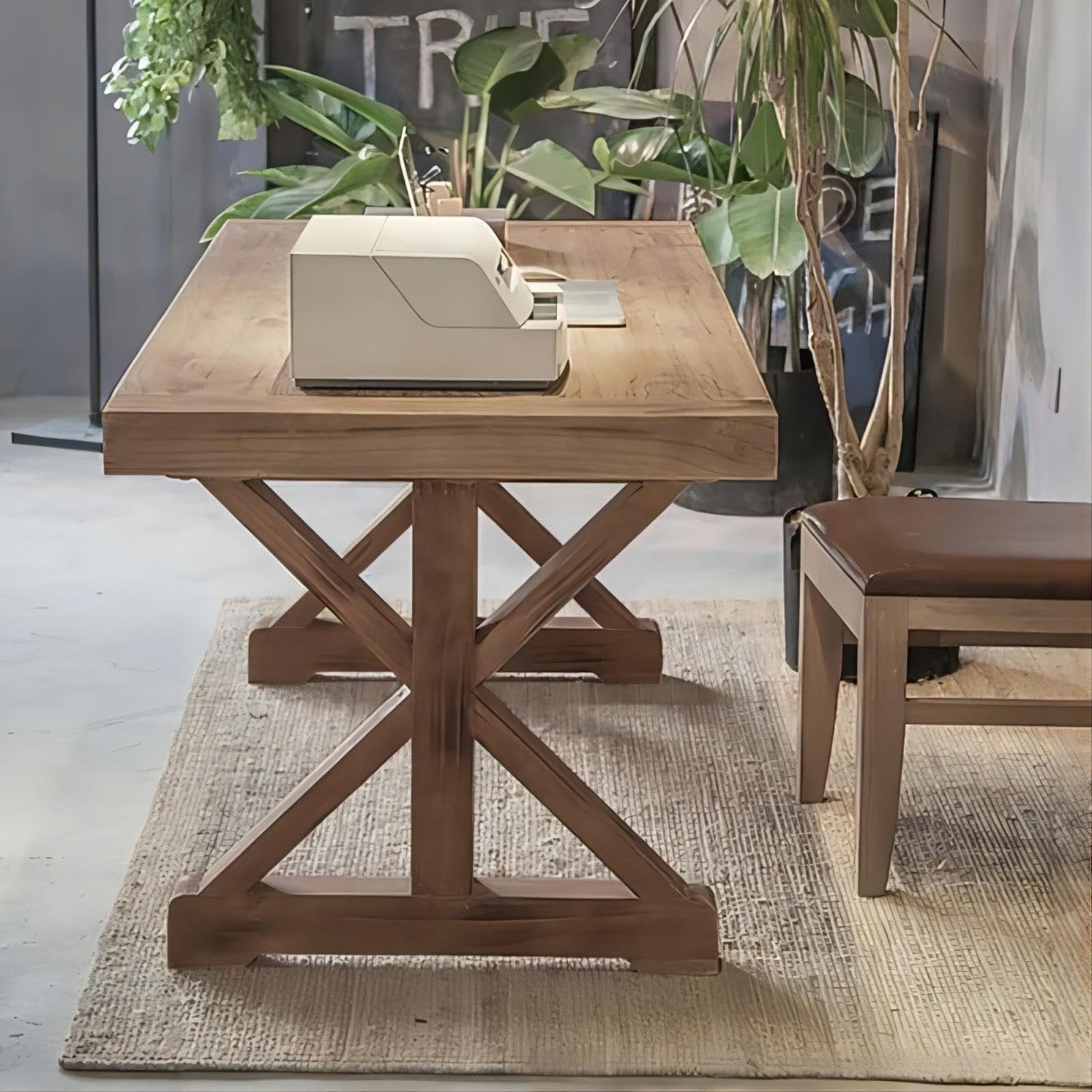 - The best selection for contemporary farmhouse aesthetics features a clean-lined frame with a rustic wood top supported by two x-cross sides and a rustic writing table that fits wonderfully with any taste.
