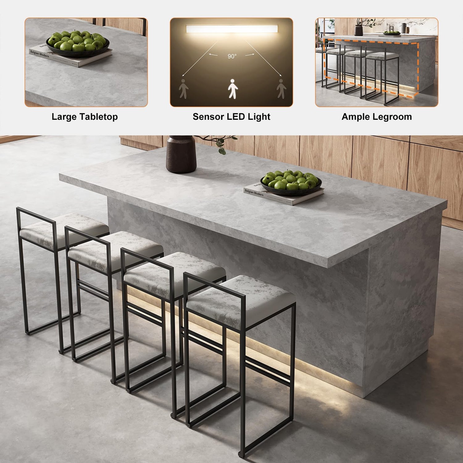 homary 72'' Kitchen Island with Storage Japandi Style Wood Kitchen Islands with Seating and LED Light in Gray
