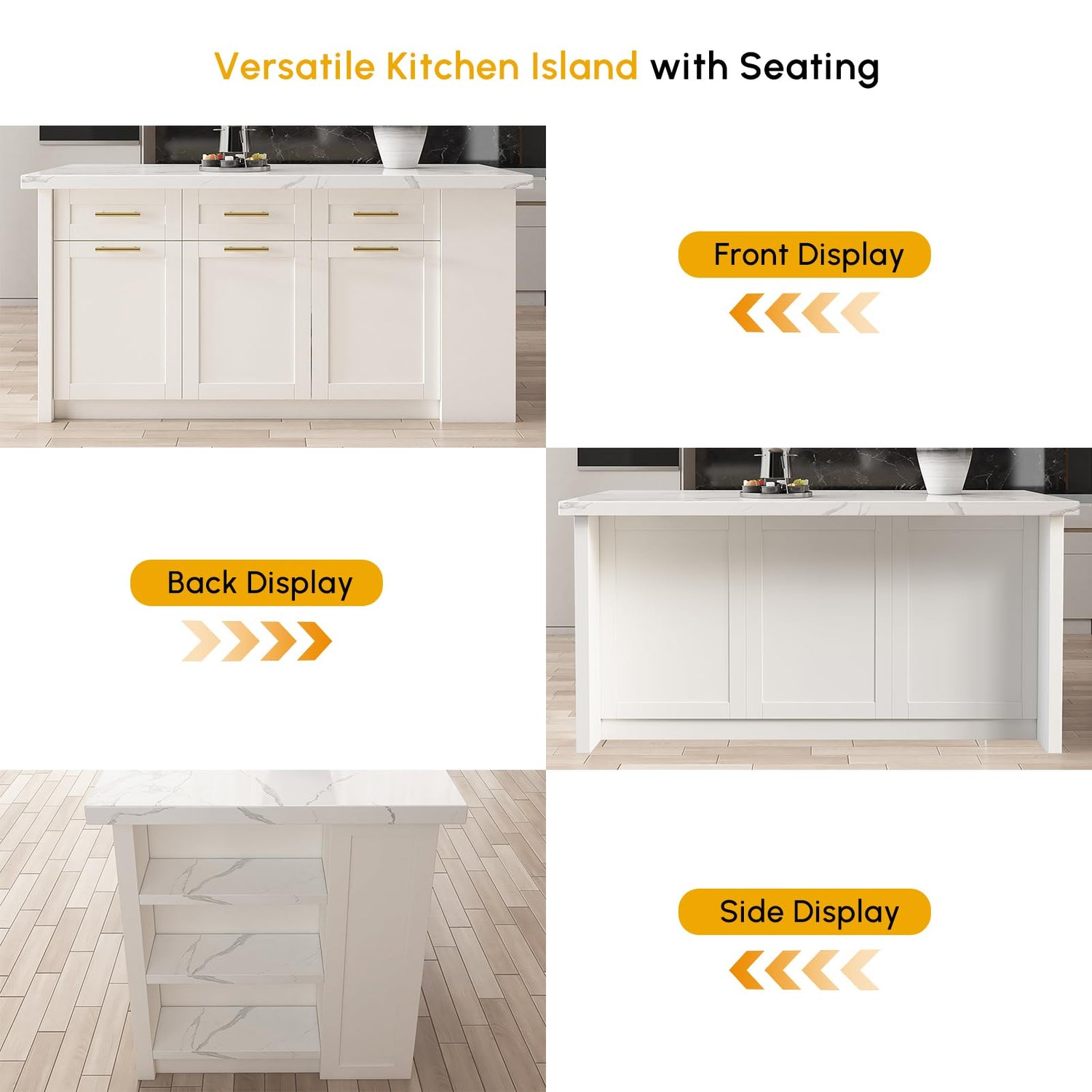 homary 72'' Kitchen Islands with Storage Modern White Kitchen Table with Seating & 3 Drawers Dining Table